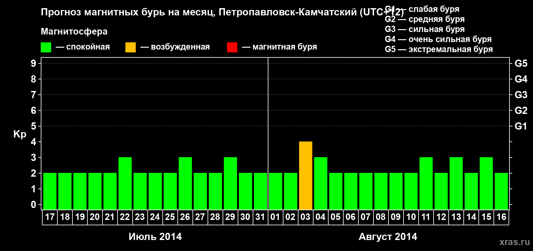Прогноз магнитных бурь Петропавловске-Камчатском — 17 июля 2014 года