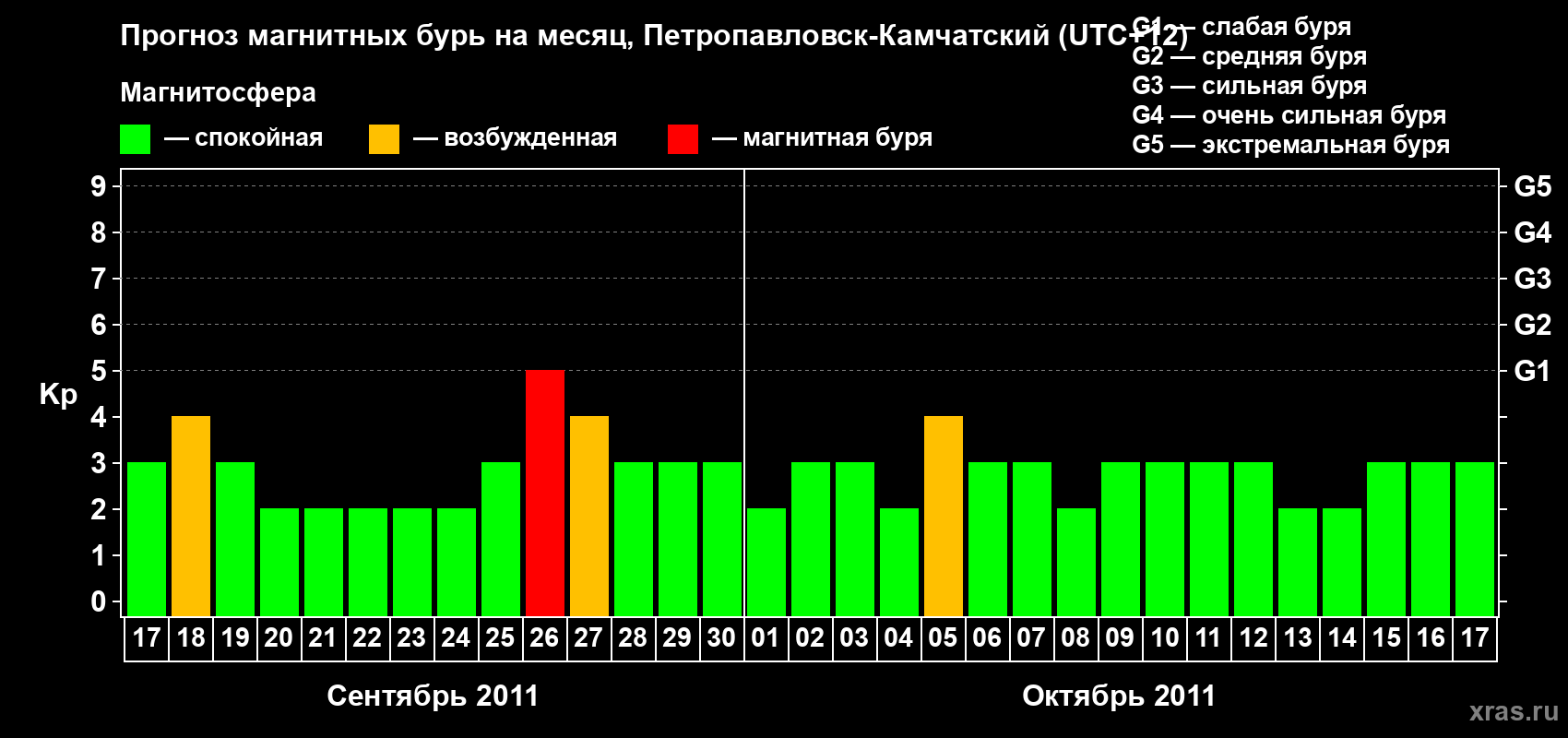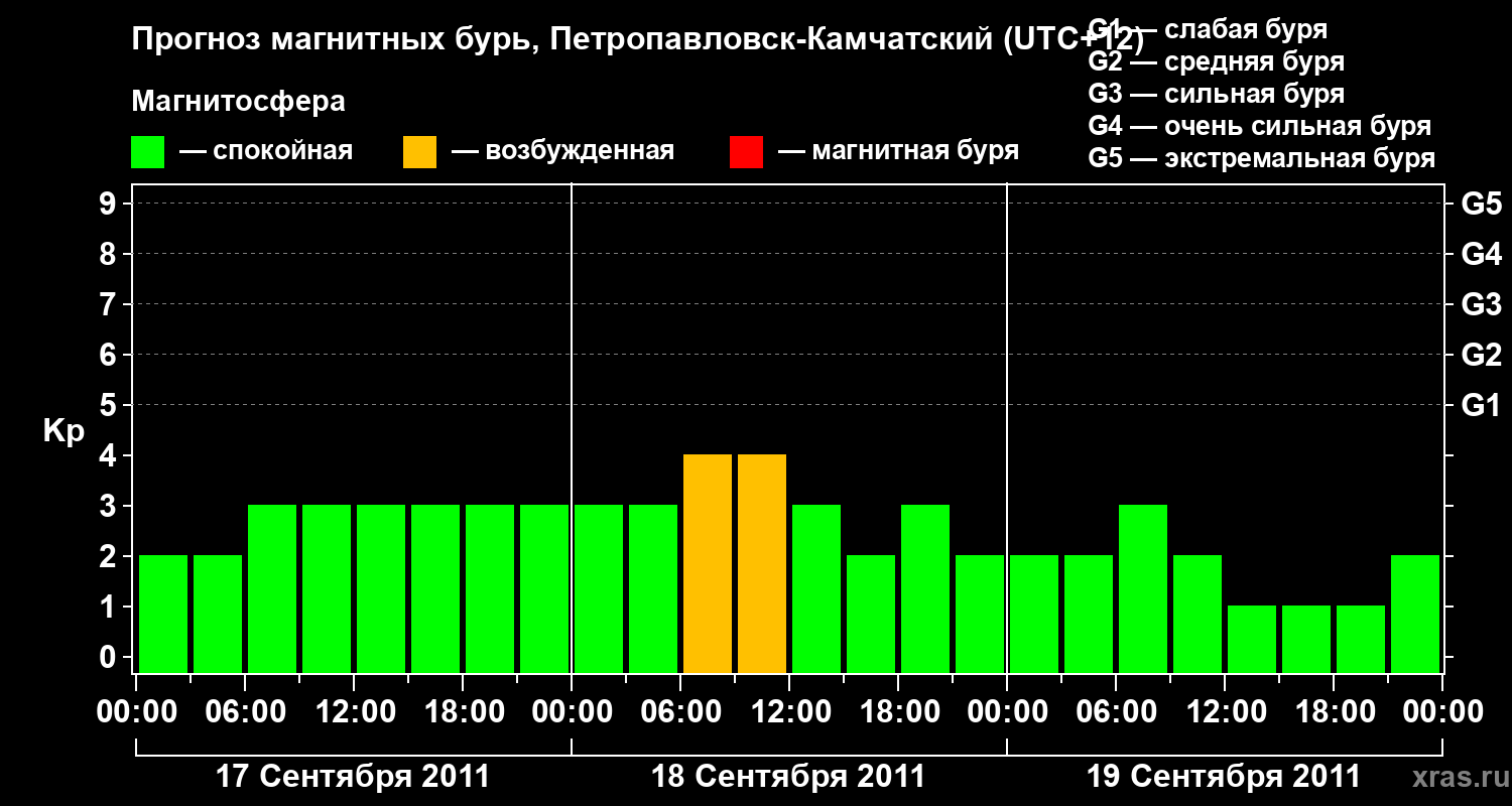 Прогноз магнитных бурь Петропавловске-Камчатском — 17 сентября 2011 года