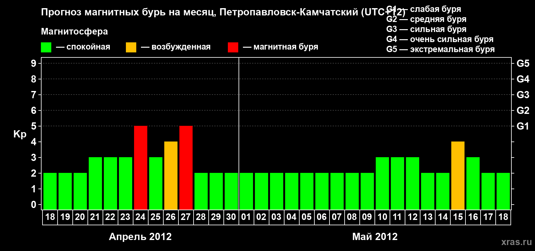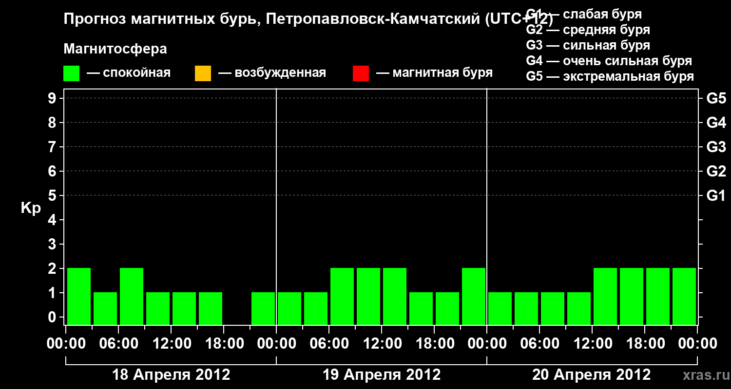 Прогноз магнитных бурь Петропавловске-Камчатском — 18 апреля 2012 года