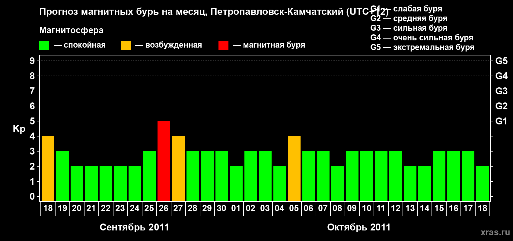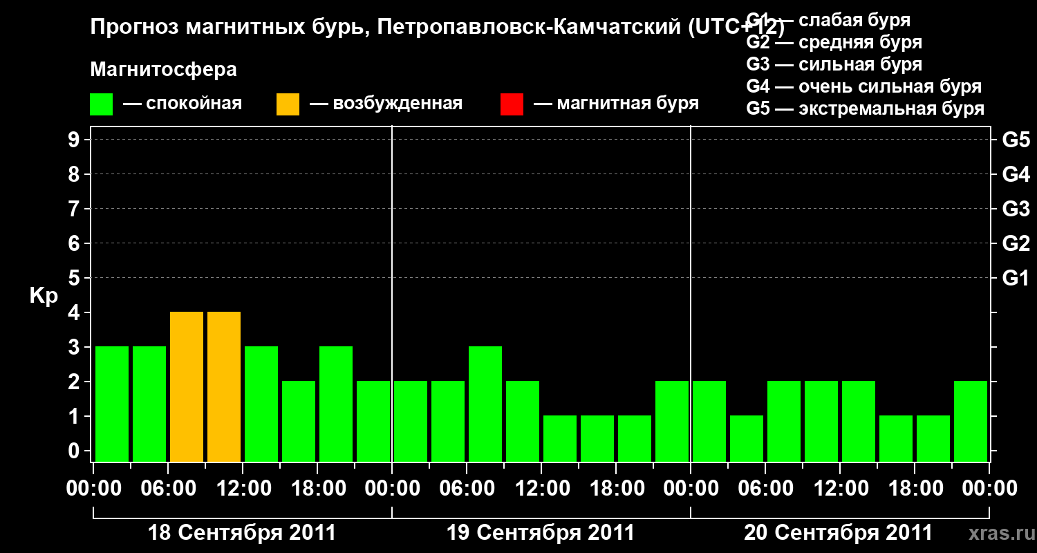 Прогноз магнитных бурь Петропавловске-Камчатском — 18 сентября 2011 года