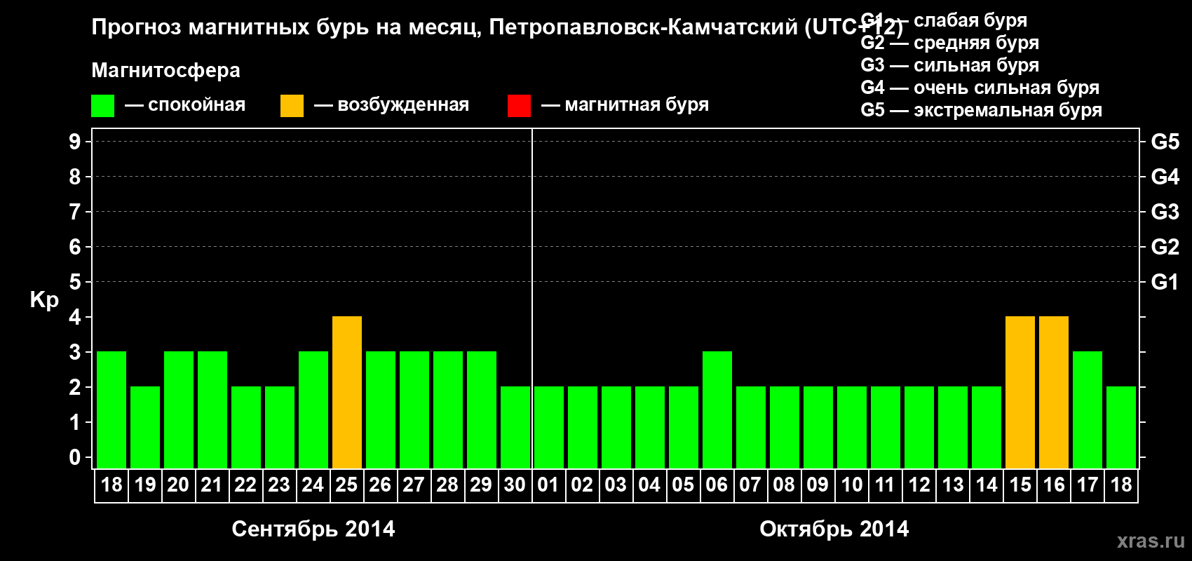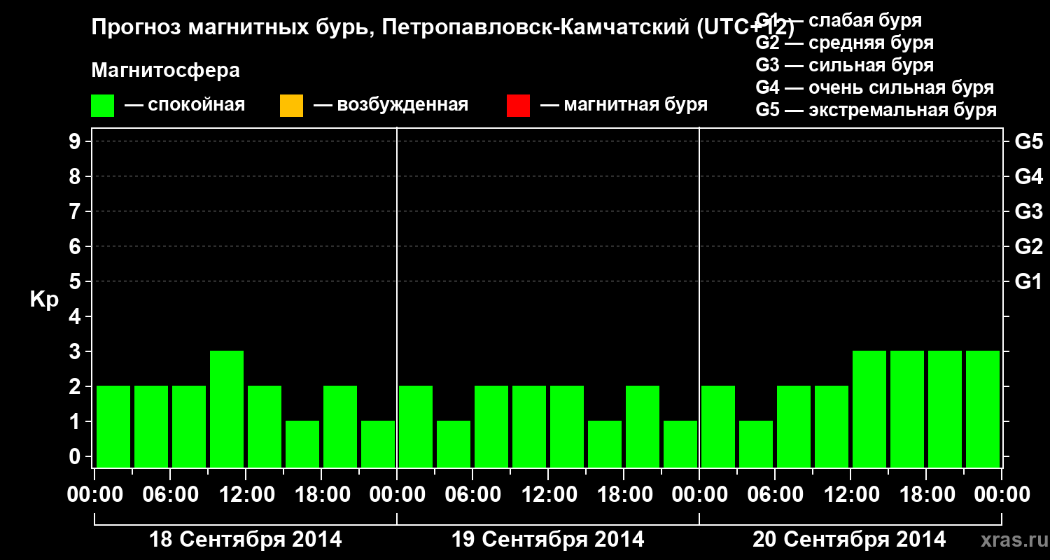Прогноз магнитных бурь Петропавловске-Камчатском — 18 сентября 2014 года