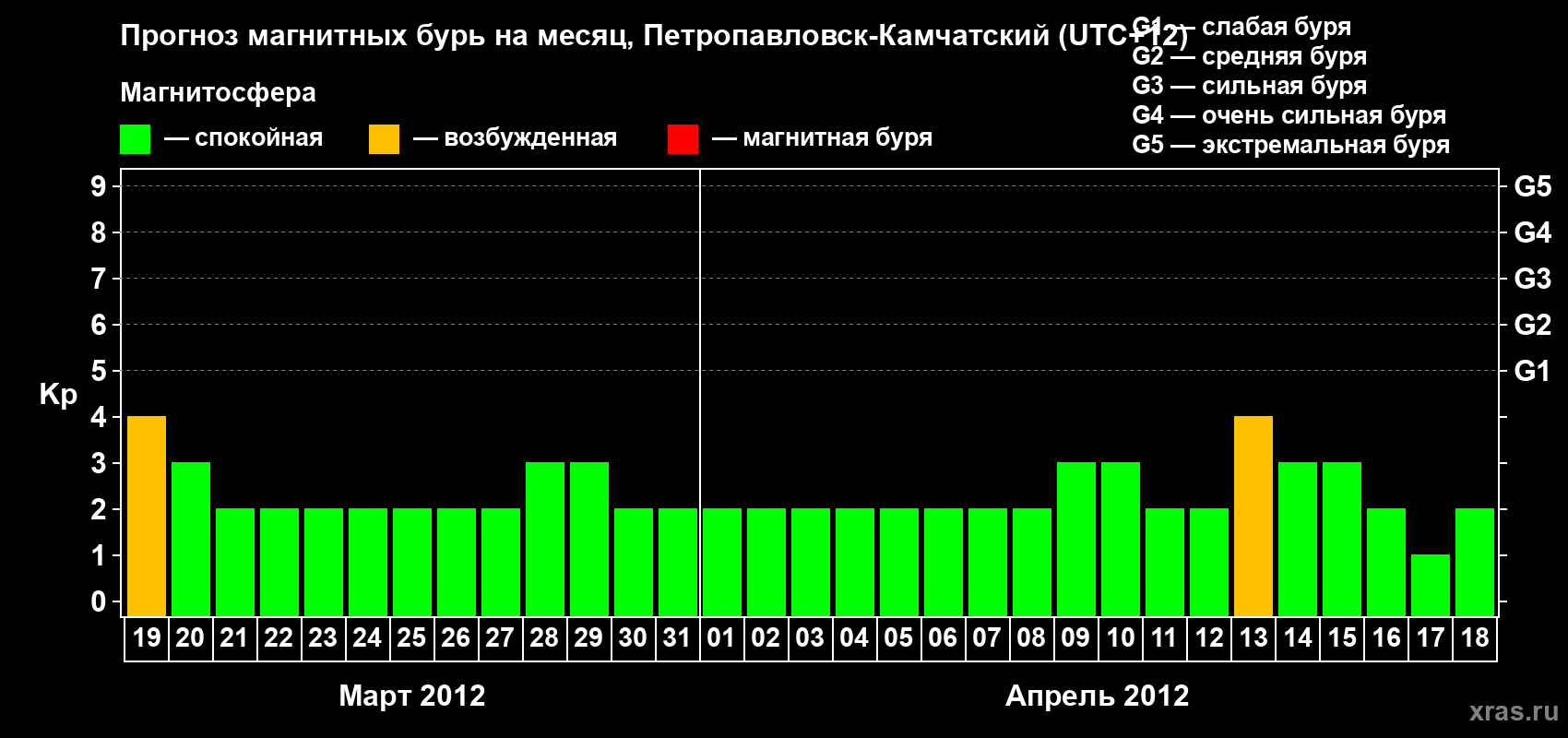 Прогноз магнитных бурь Петропавловске-Камчатском — 19 марта 2012 года