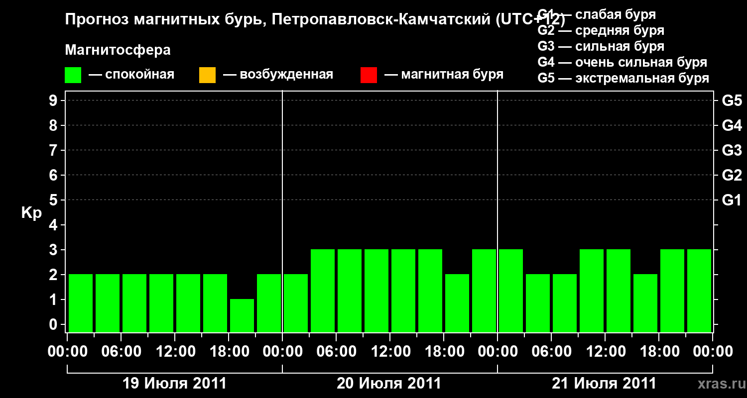 Прогноз магнитных бурь Петропавловске-Камчатском — 19 июля 2011 года