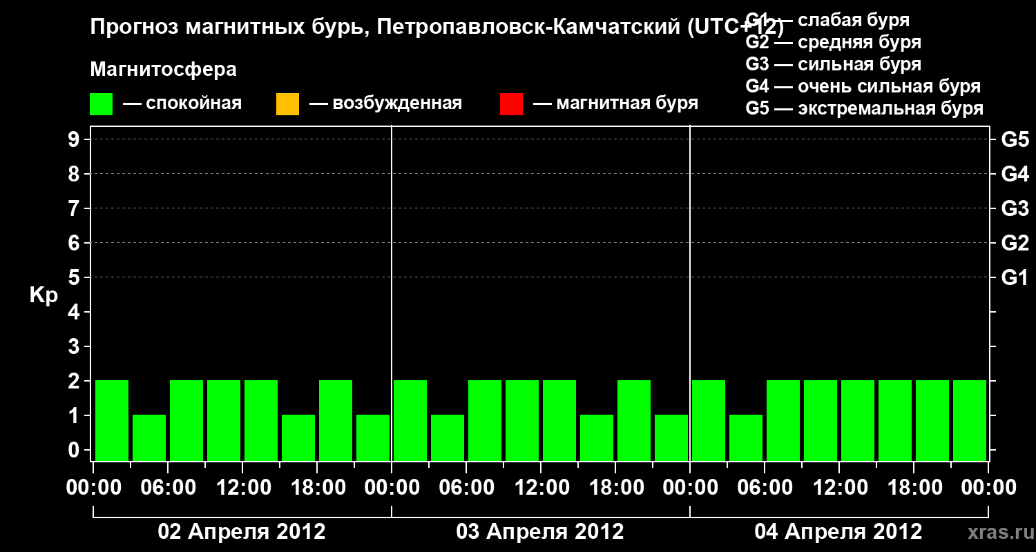 Прогноз магнитных бурь Петропавловске-Камчатском — 2 апреля 2012 года