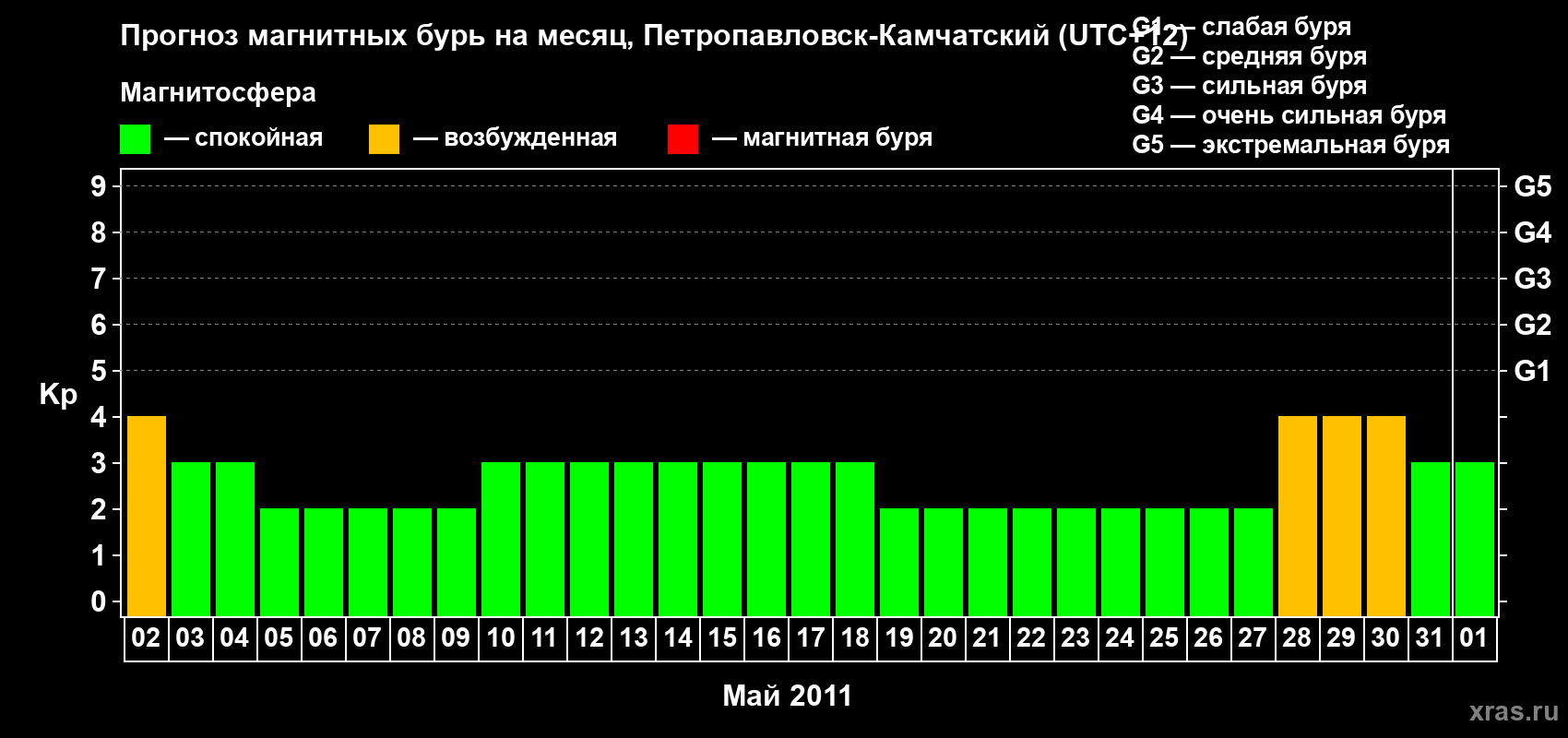 Прогноз магнитных бурь Петропавловске-Камчатском — 2 мая 2011 года