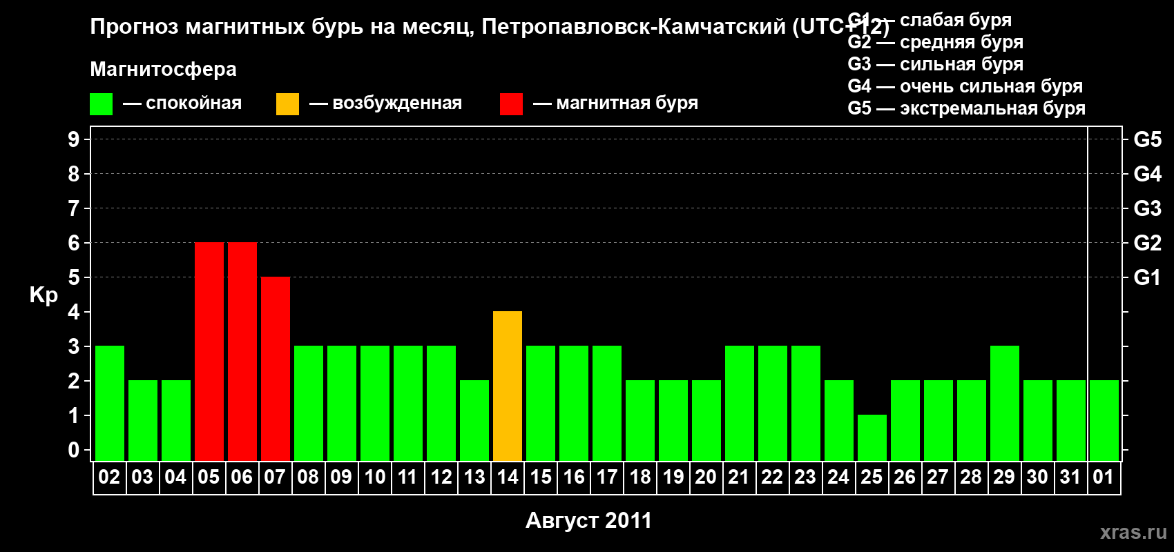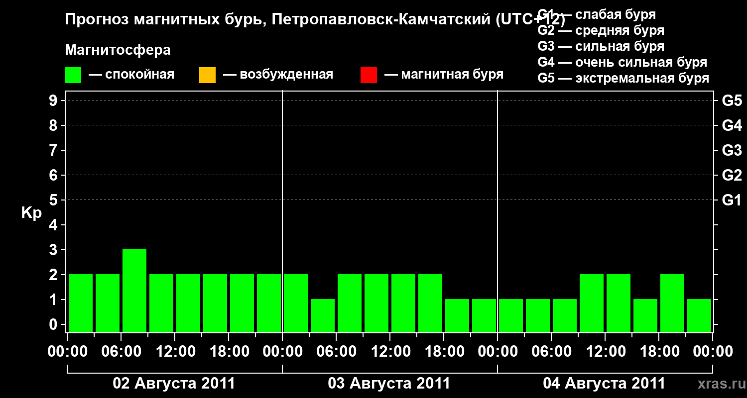 Прогноз магнитных бурь Петропавловске-Камчатском — 2 августа 2011 года