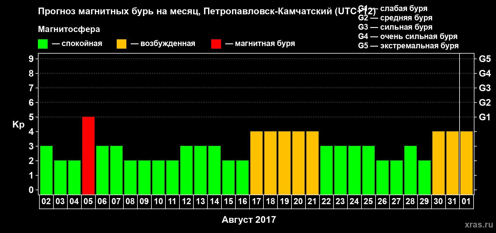 Прогноз магнитных бурь Петропавловске-Камчатском — 2 августа 2017 года