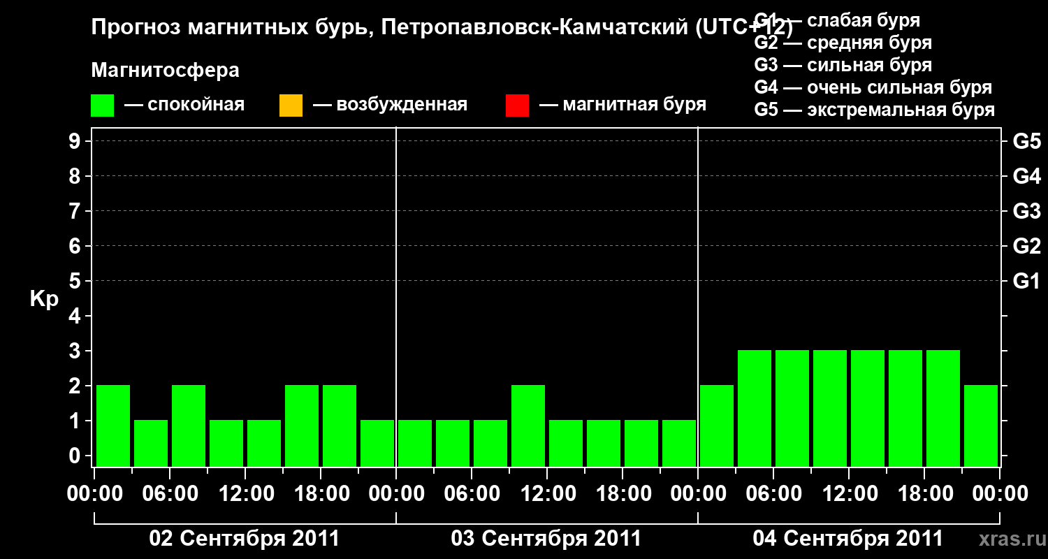 Прогноз магнитных бурь Петропавловске-Камчатском — 2 сентября 2011 года