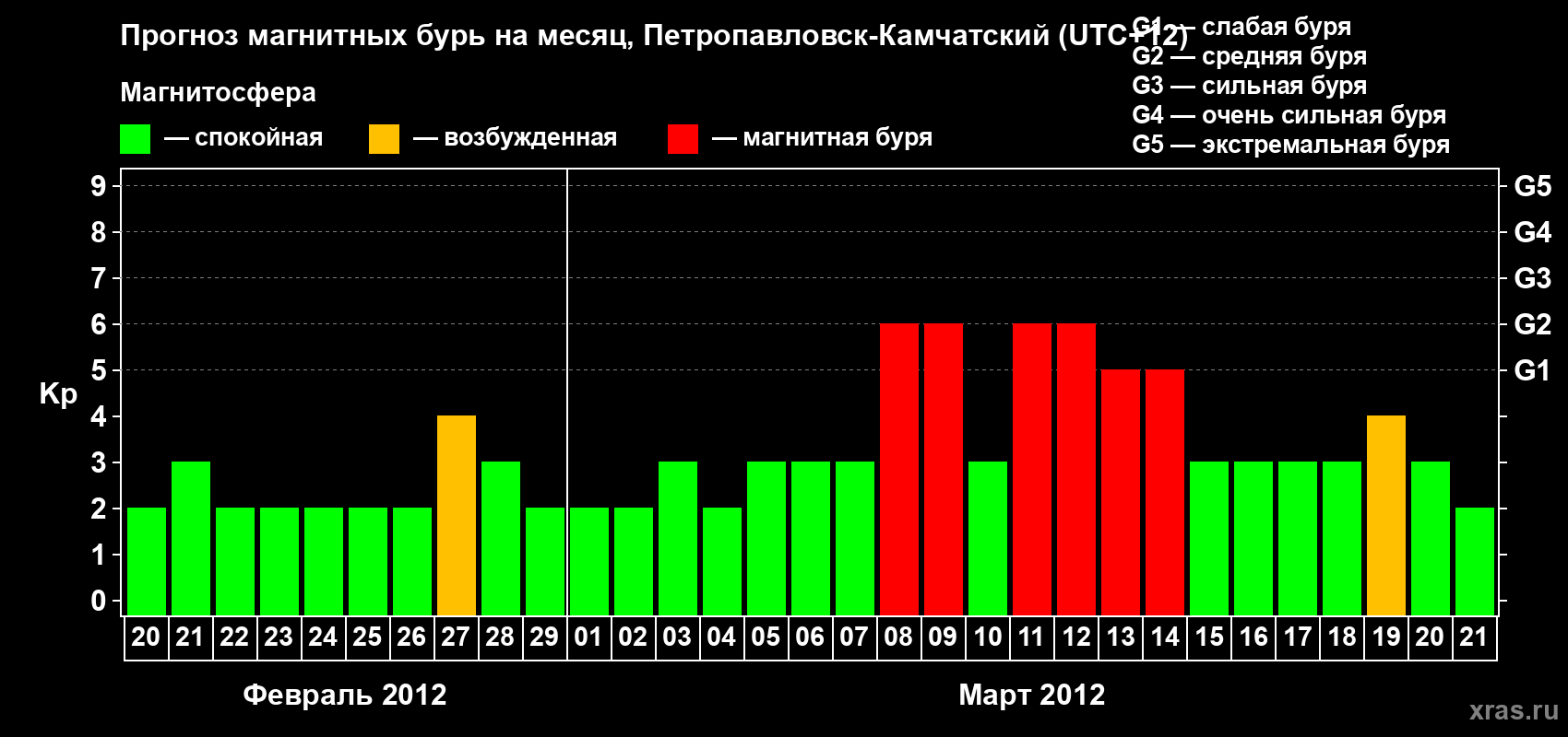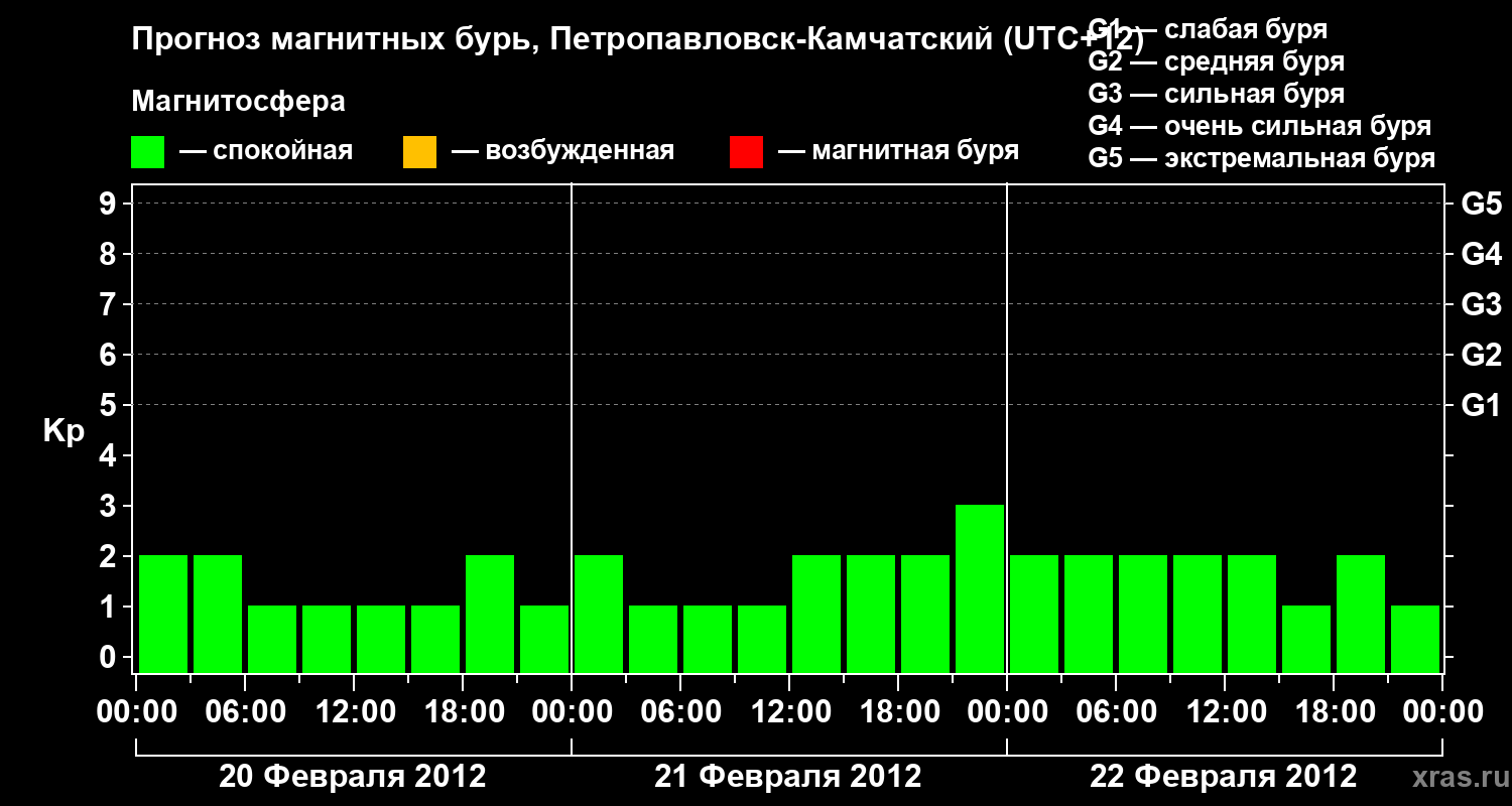 Прогноз магнитных бурь Петропавловске-Камчатском — 20 февраля 2012 года