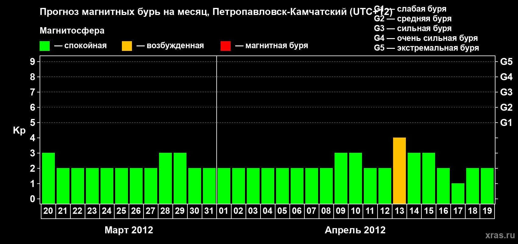 Прогноз магнитных бурь Петропавловске-Камчатском — 20 марта 2012 года
