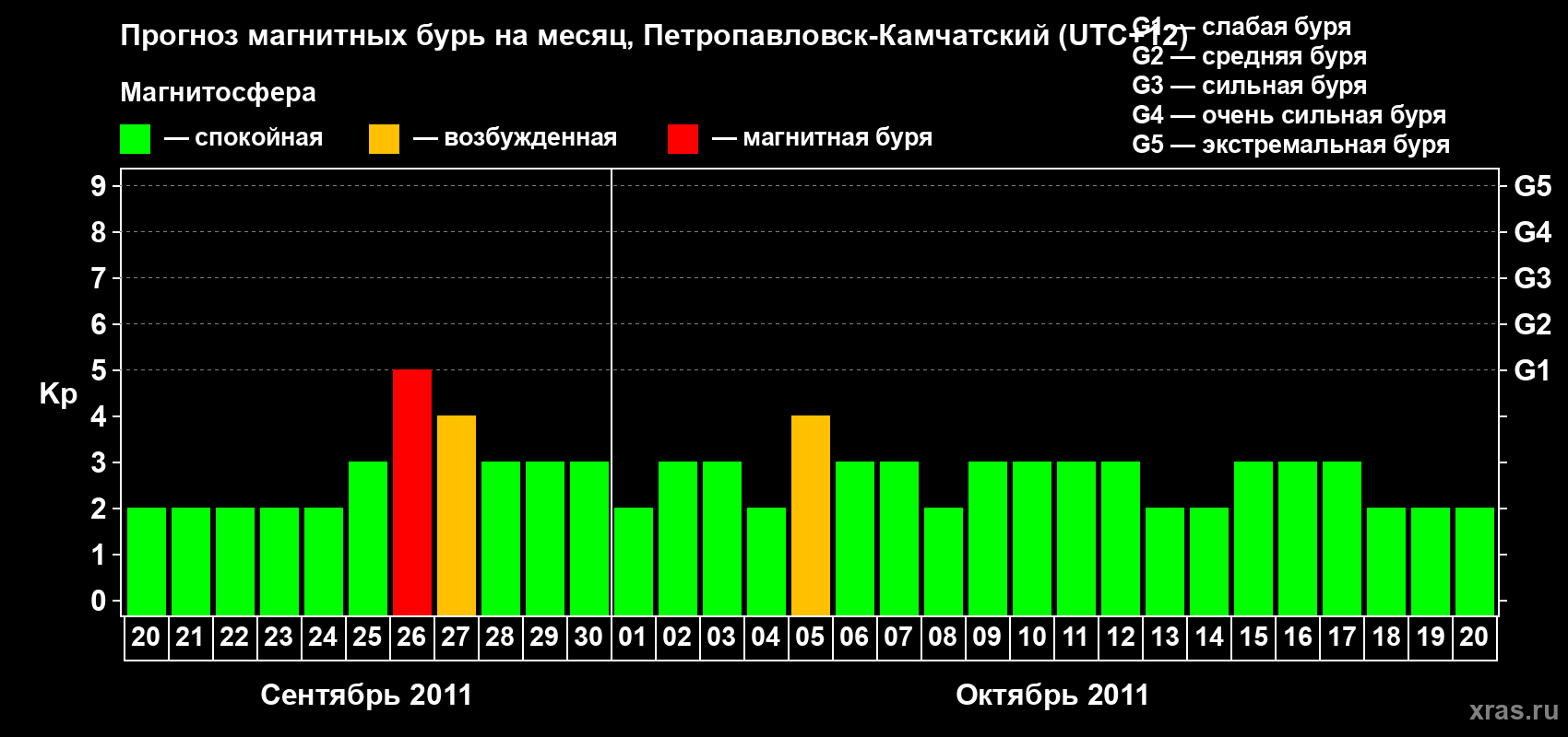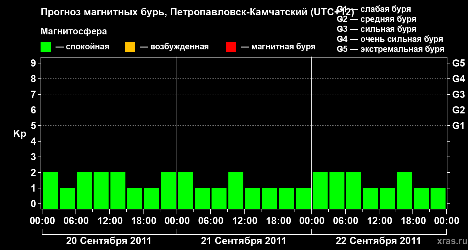 Прогноз магнитных бурь Петропавловске-Камчатском — 20 сентября 2011 года
