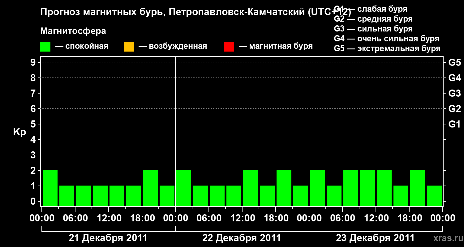 Прогноз магнитных бурь Петропавловске-Камчатском — 21 декабря 2011 года