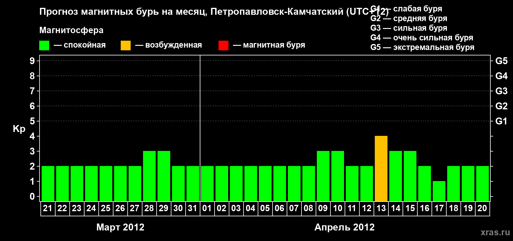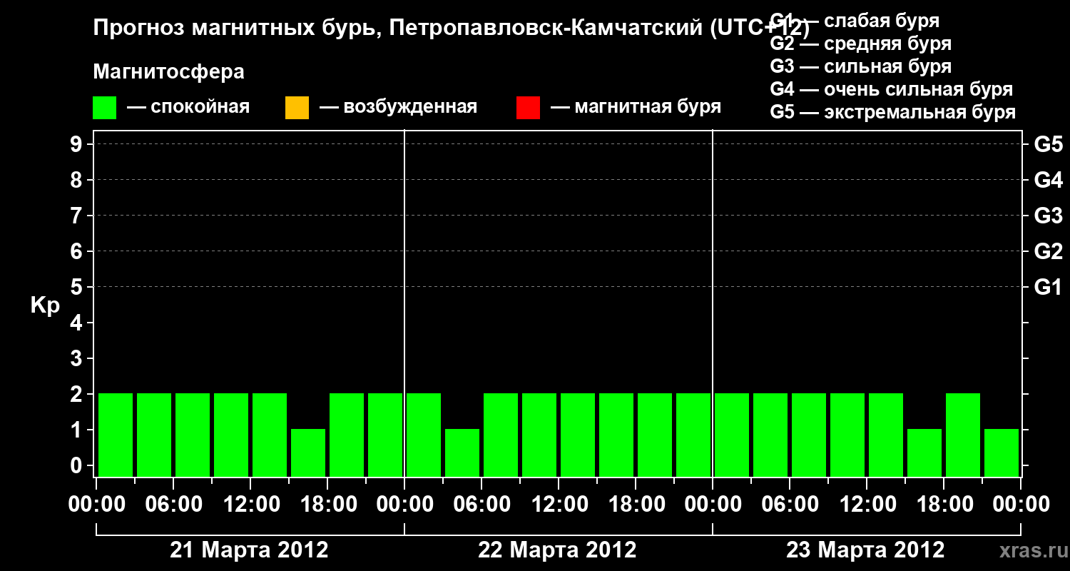 Прогноз магнитных бурь Петропавловске-Камчатском — 21 марта 2012 года