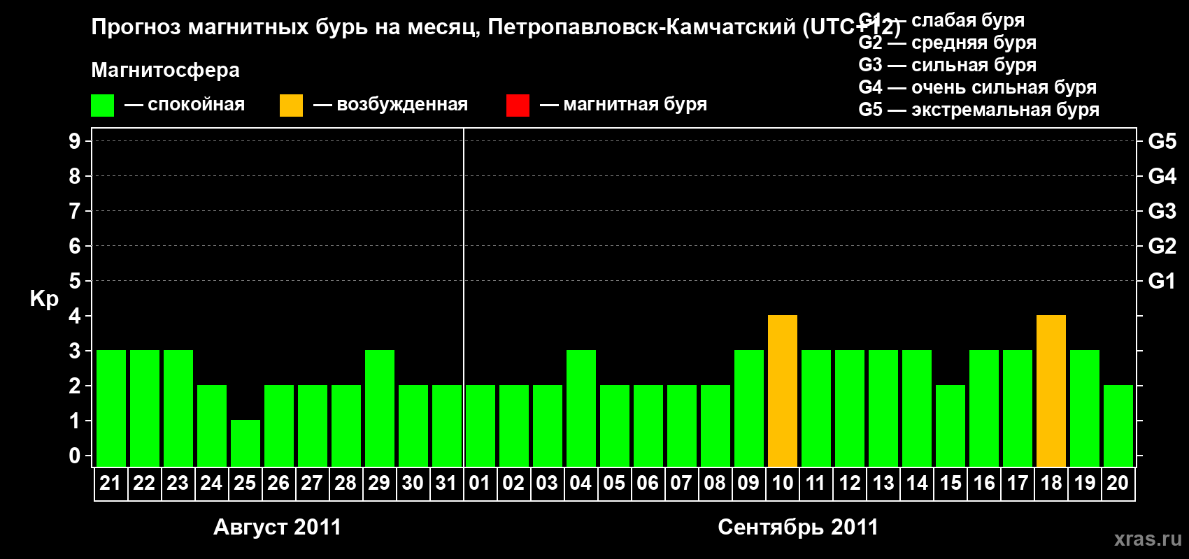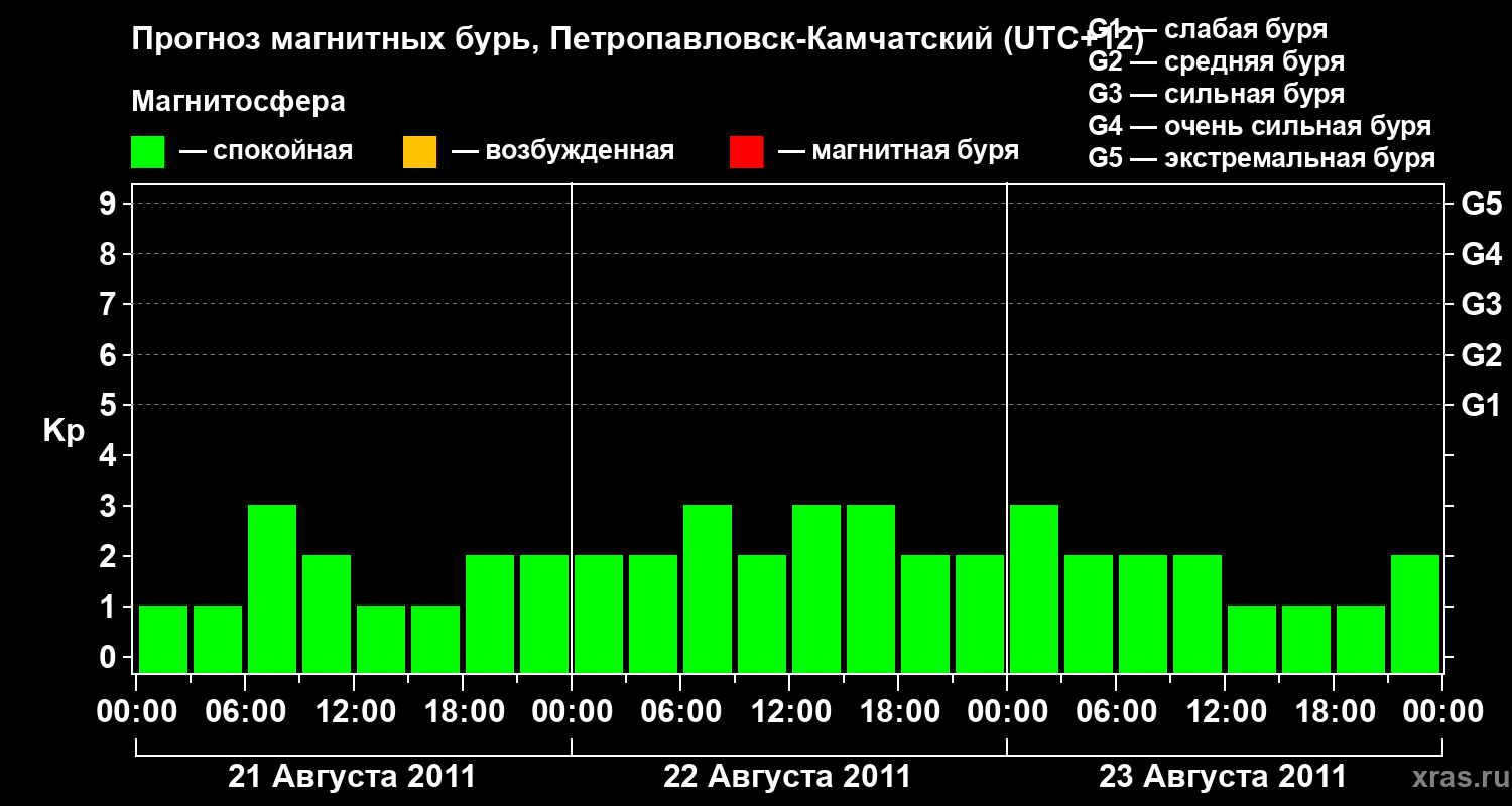 Прогноз магнитных бурь Петропавловске-Камчатском — 21 августа 2011 года