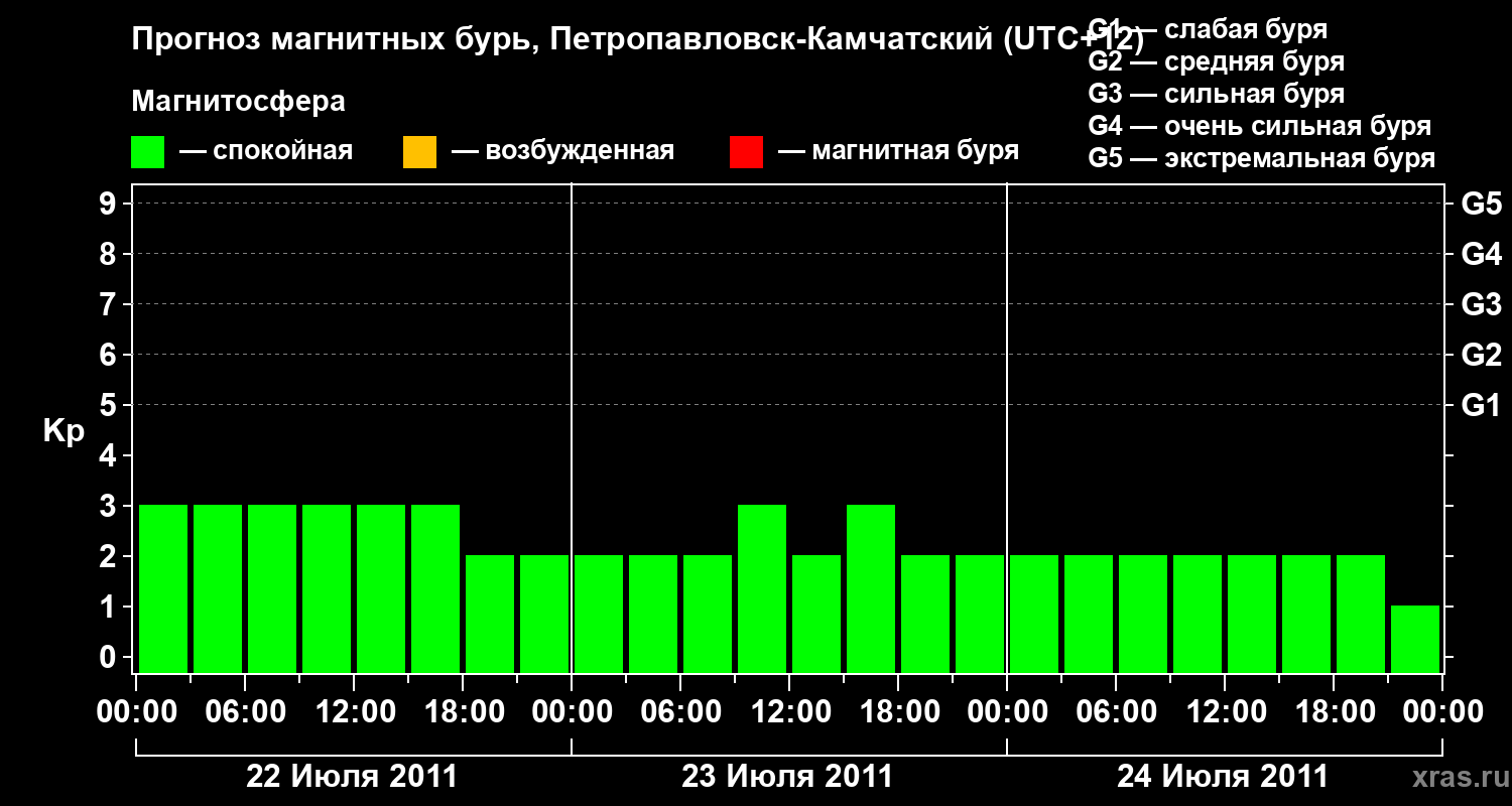 Прогноз магнитных бурь Петропавловске-Камчатском — 22 июля 2011 года