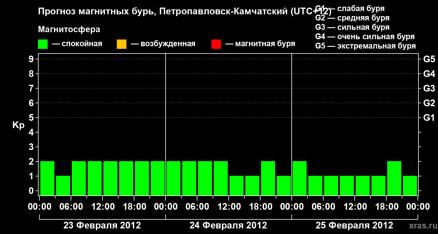 Прогноз магнитных бурь Петропавловске-Камчатском — 23 февраля 2012 года