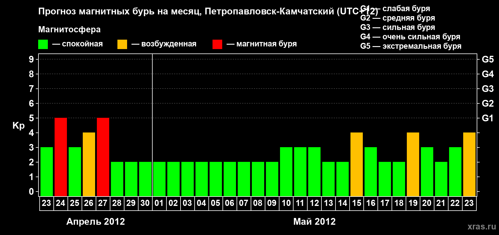 Прогноз магнитных бурь Петропавловске-Камчатском — 23 апреля 2012 года