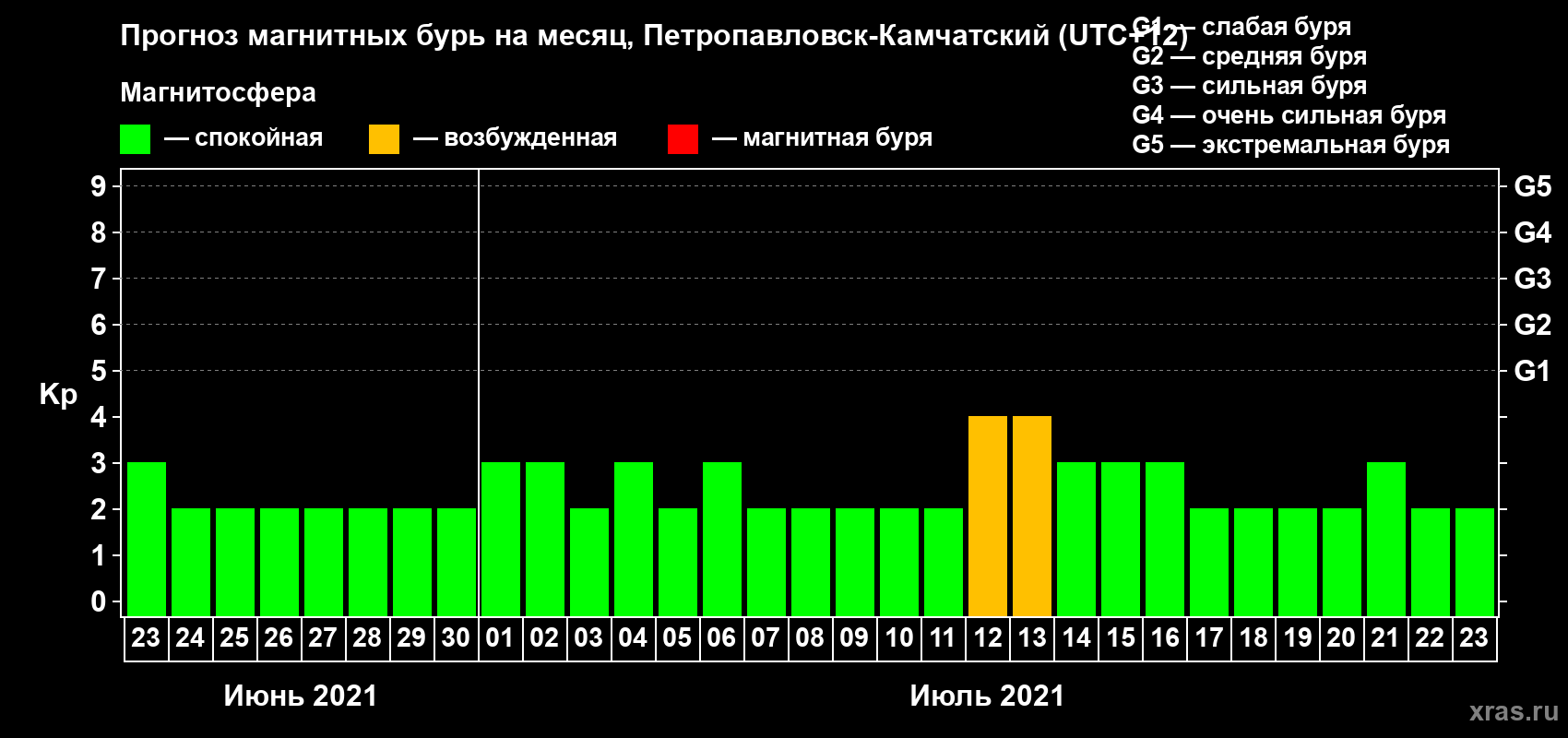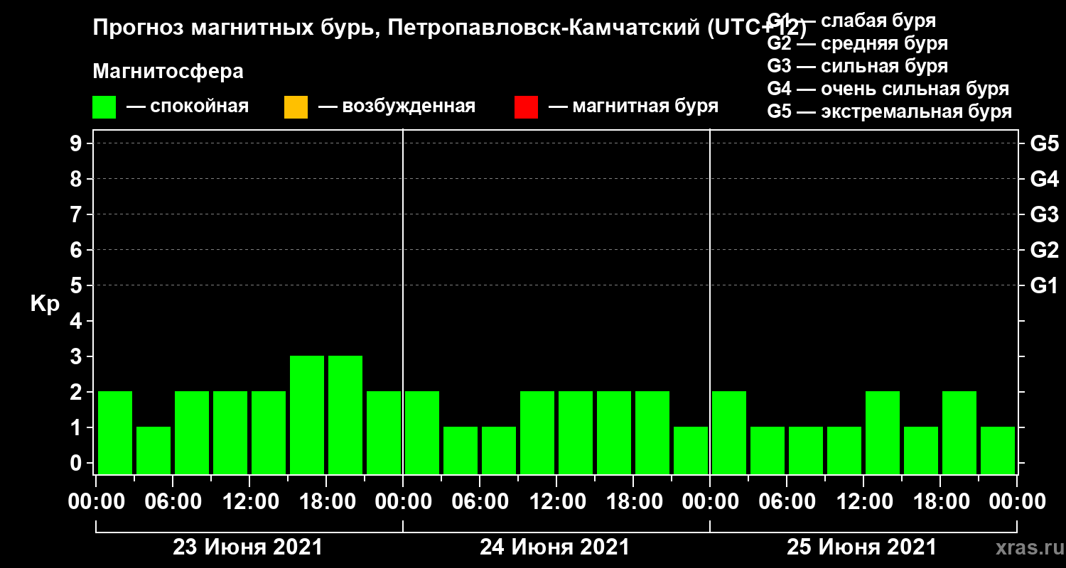 Прогноз магнитных бурь Петропавловске-Камчатском — 23 июня 2021 года