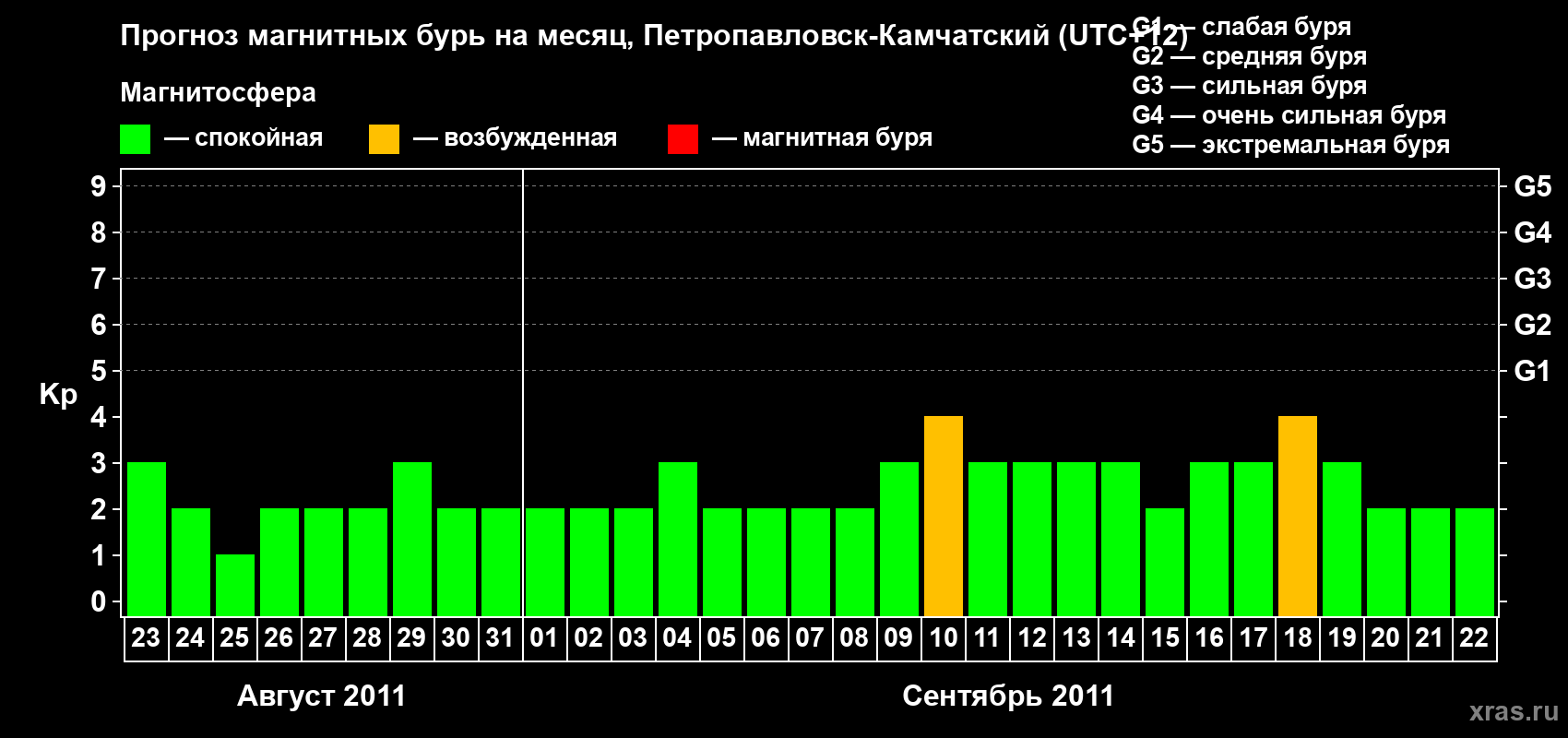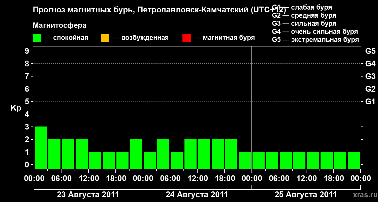Прогноз магнитных бурь Петропавловске-Камчатском — 23 августа 2011 года