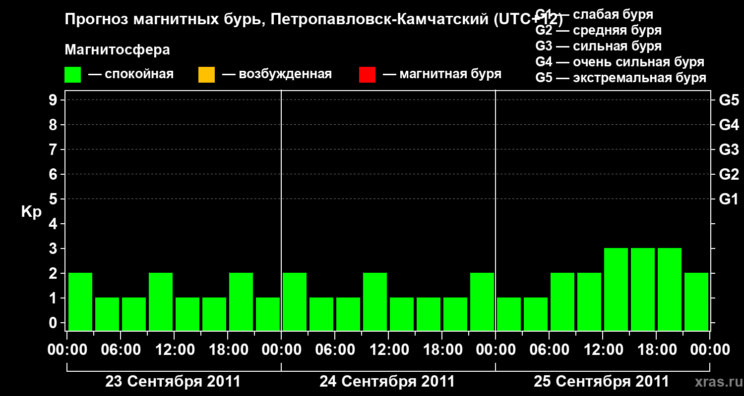Прогноз магнитных бурь Петропавловске-Камчатском — 23 сентября 2011 года