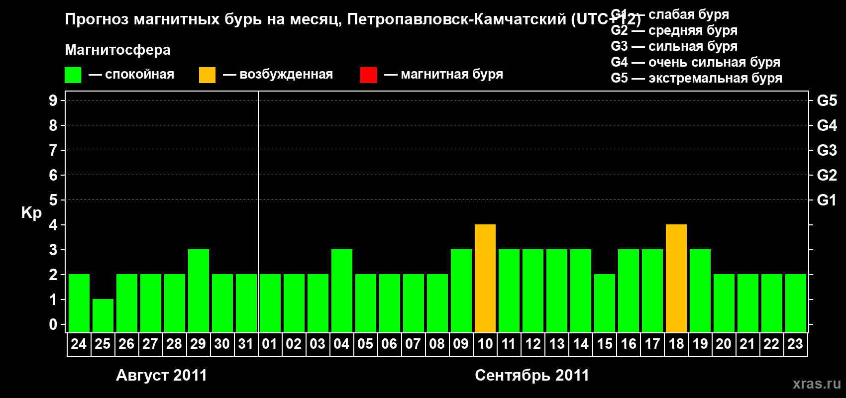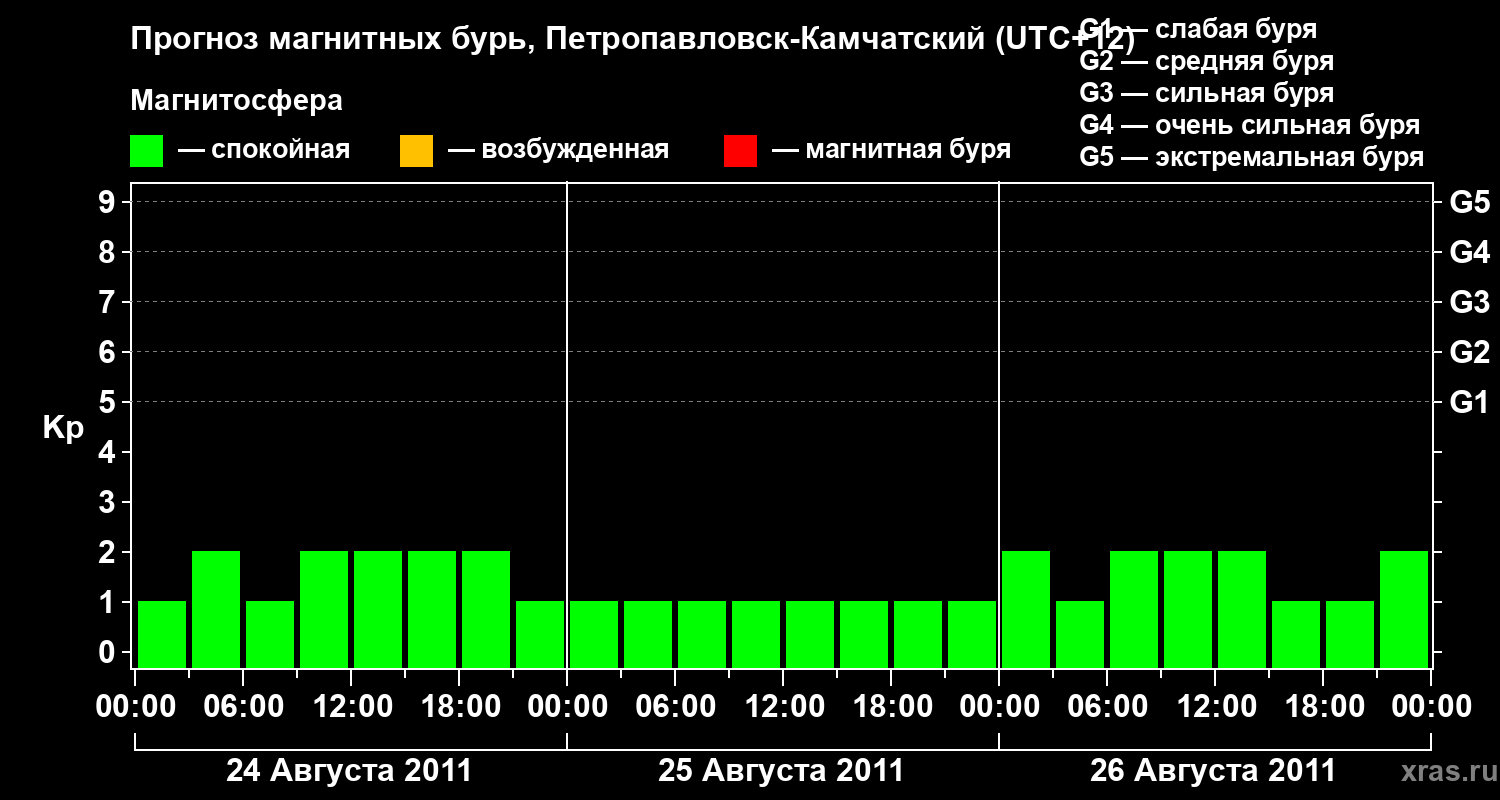 Прогноз магнитных бурь Петропавловске-Камчатском — 24 августа 2011 года