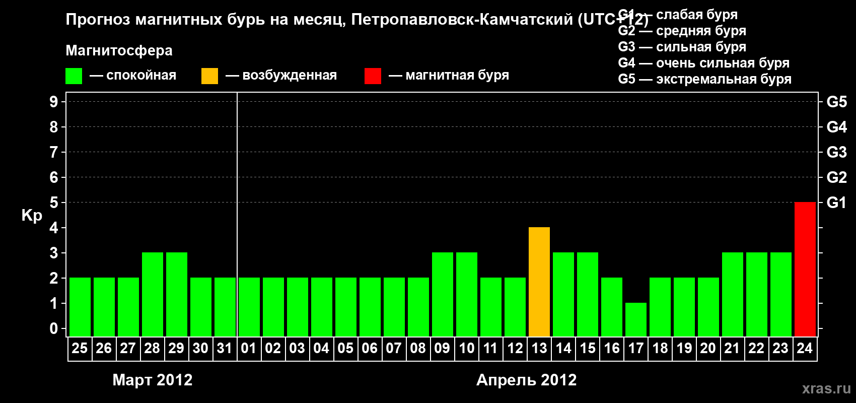 Прогноз магнитных бурь Петропавловске-Камчатском — 25 марта 2012 года
