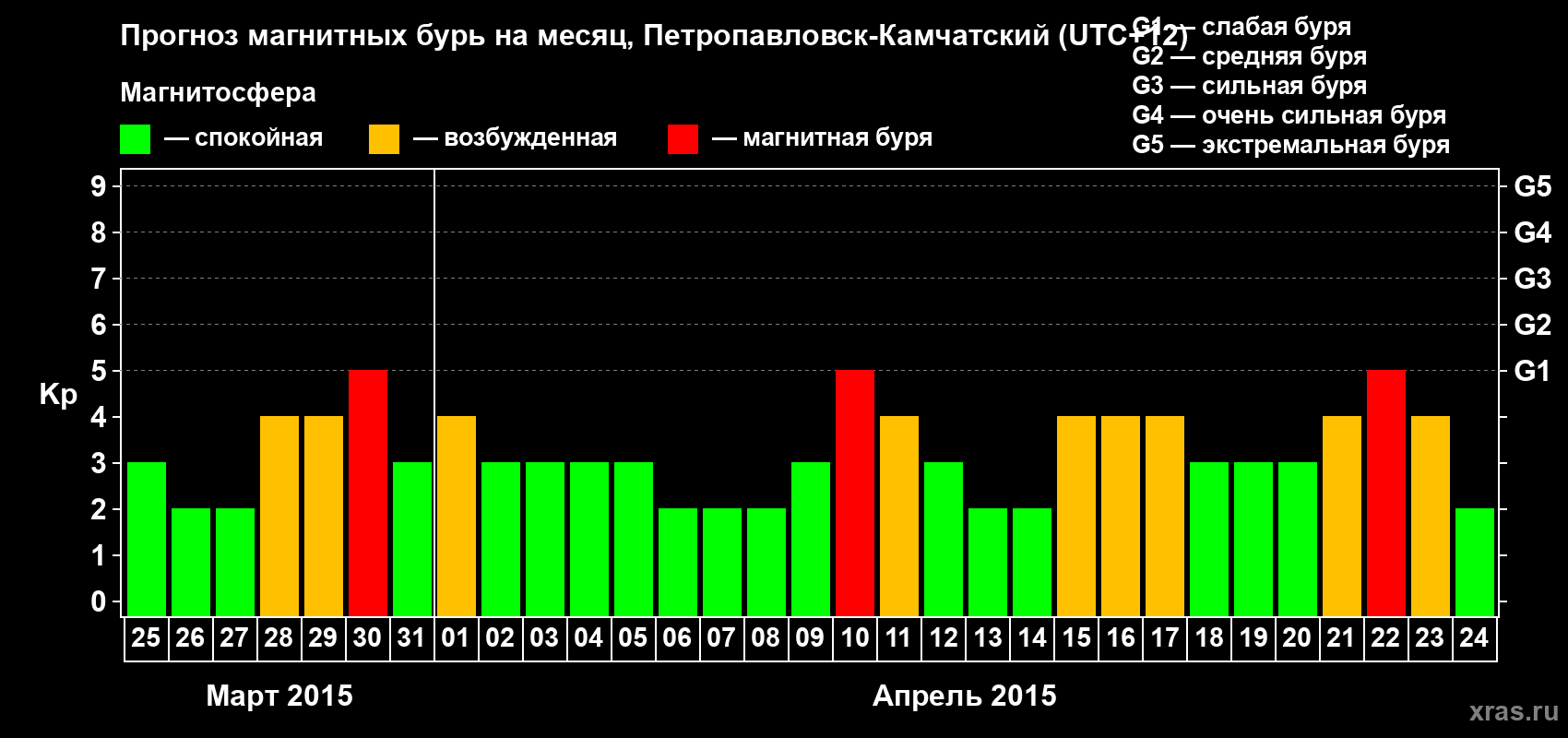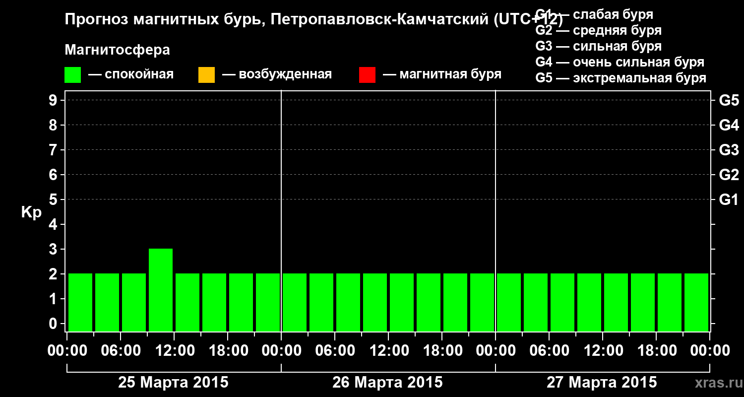 Прогноз магнитных бурь Петропавловске-Камчатском — 25 марта 2015 года