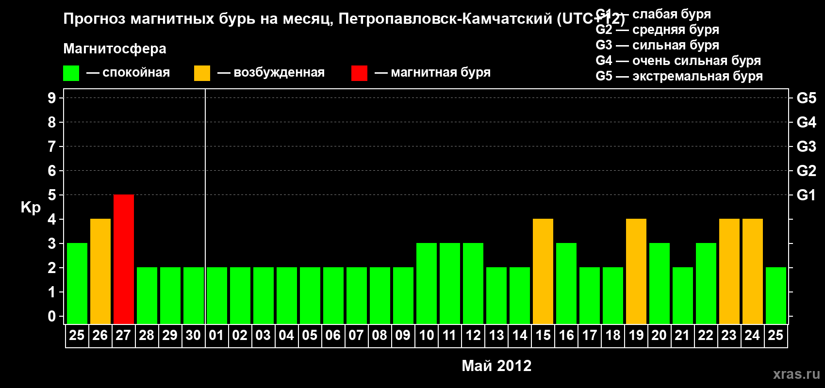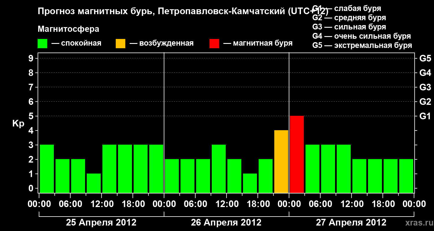 Прогноз магнитных бурь Петропавловске-Камчатском — 25 апреля 2012 года