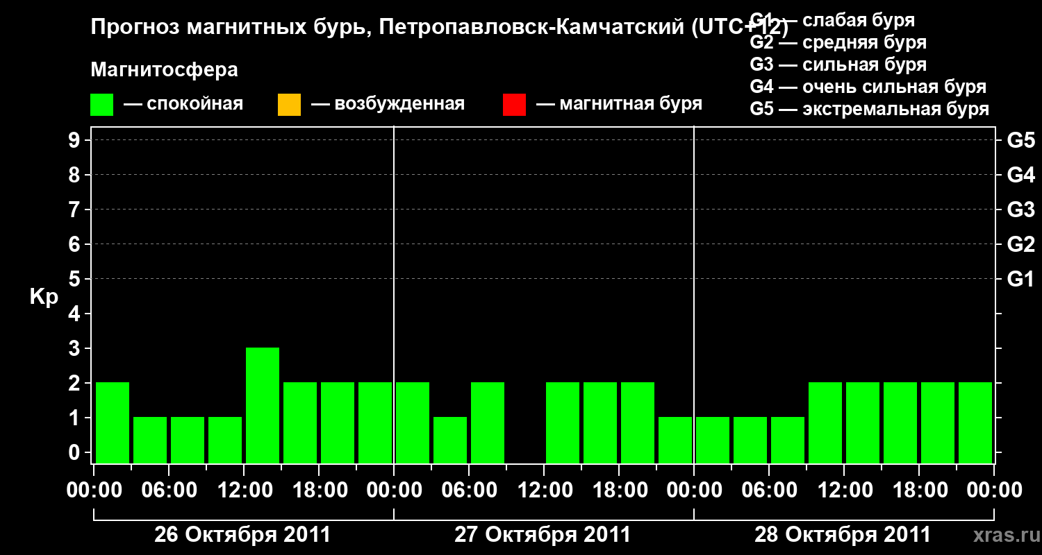 Прогноз магнитных бурь Петропавловске-Камчатском — 26 октября 2011 года