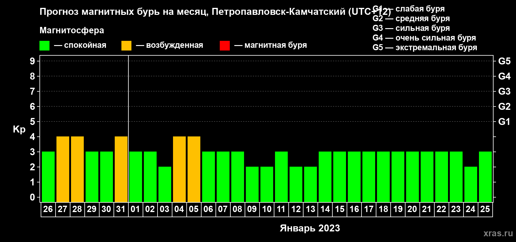 Прогноз магнитных бурь Петропавловске-Камчатском — 26 декабря 2022 года