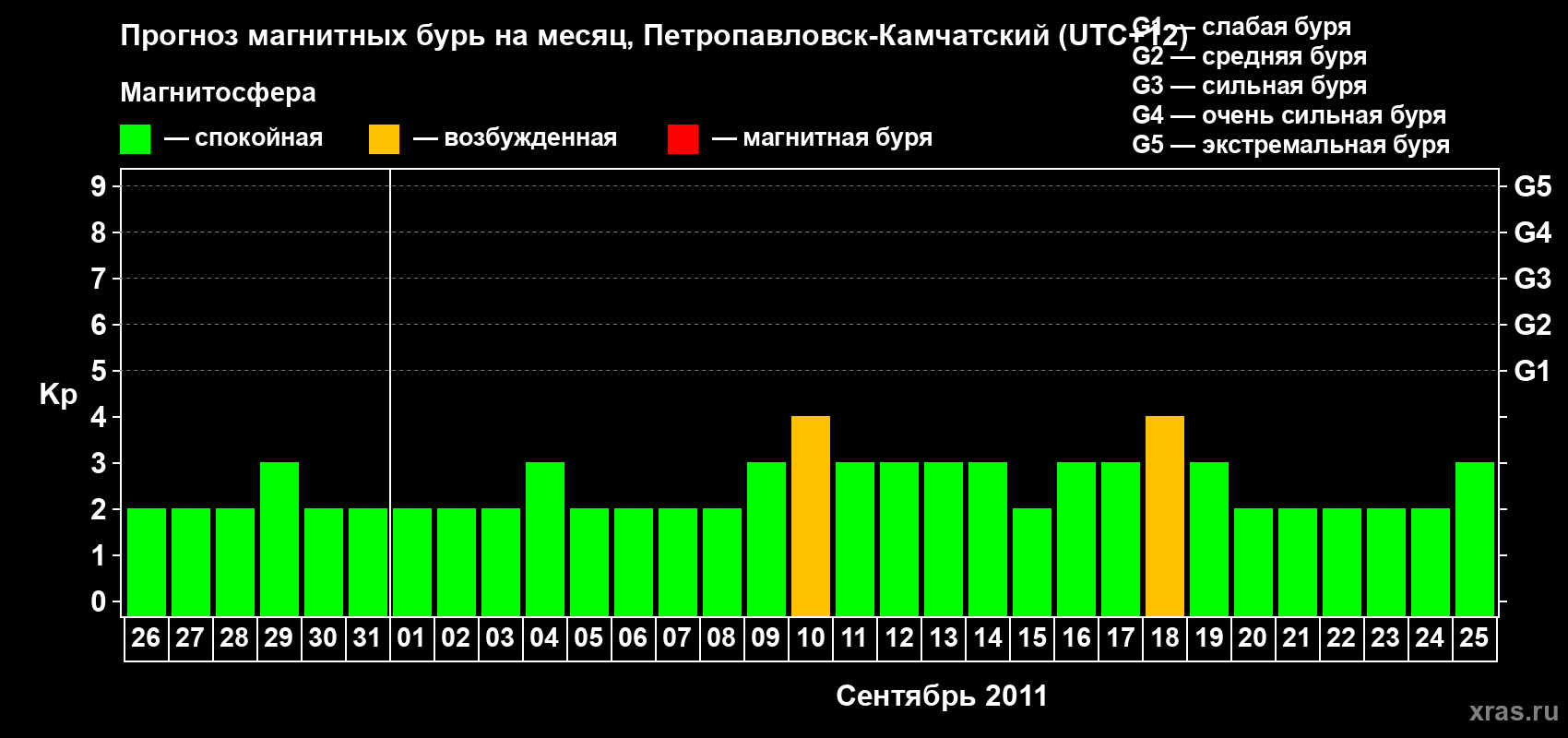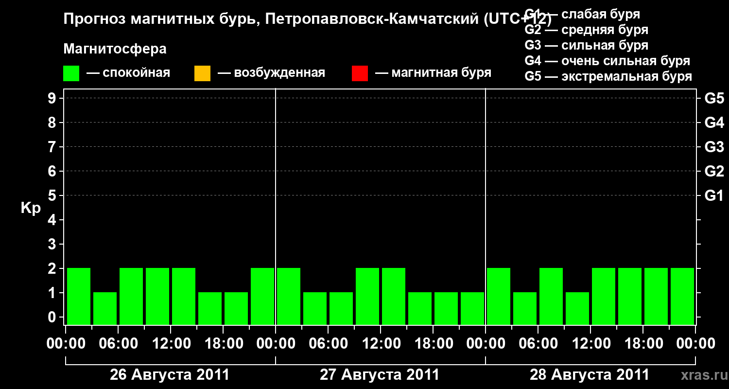 Прогноз магнитных бурь Петропавловске-Камчатском — 26 августа 2011 года