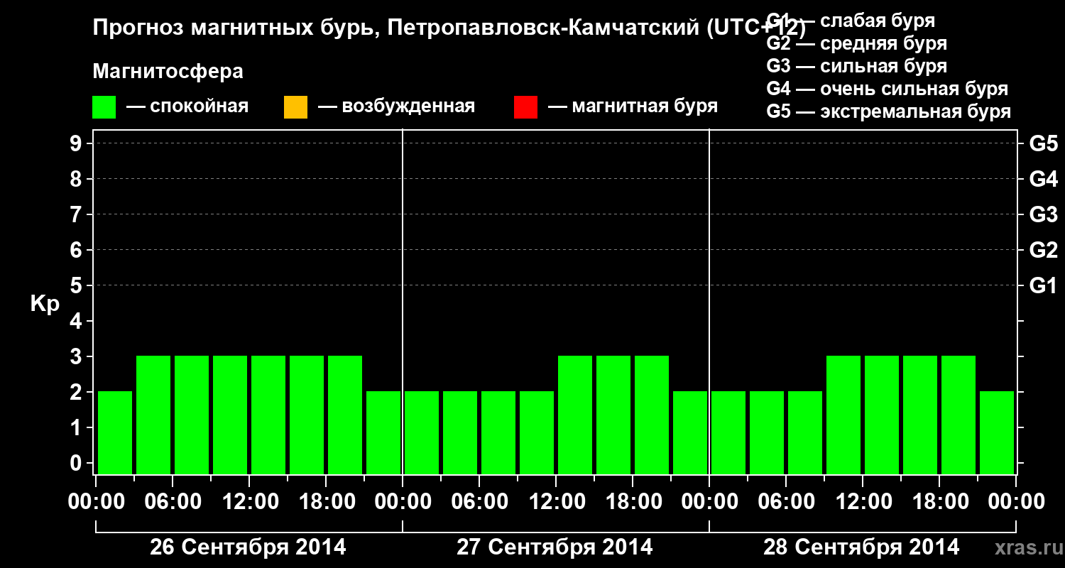 Прогноз магнитных бурь Петропавловске-Камчатском — 26 сентября 2014 года