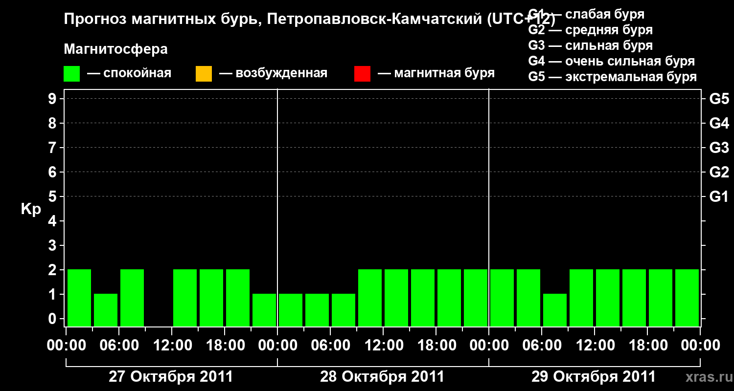 Прогноз магнитных бурь Петропавловске-Камчатском — 27 октября 2011 года