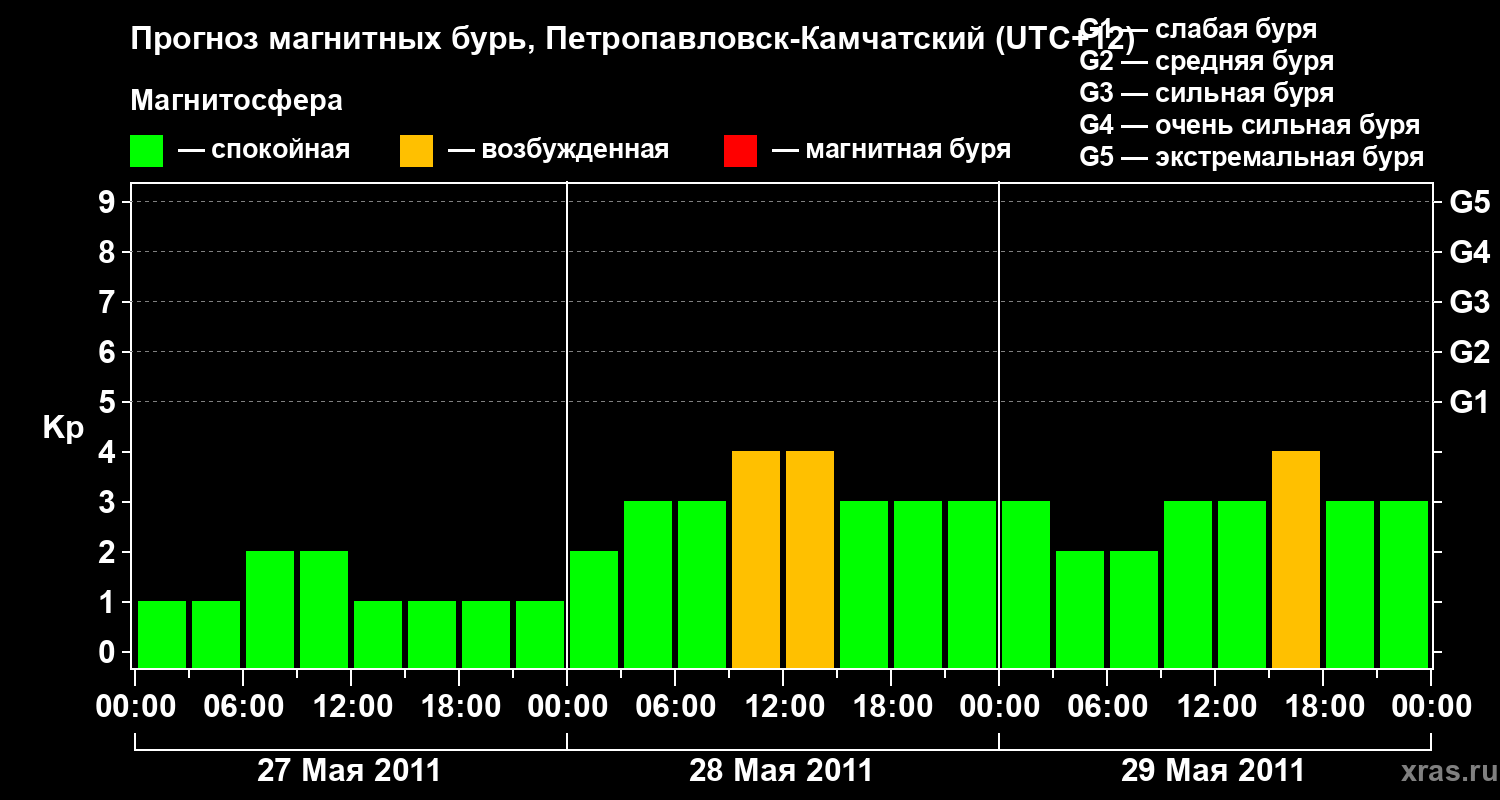 Прогноз магнитных бурь Петропавловске-Камчатском — 27 мая 2011 года