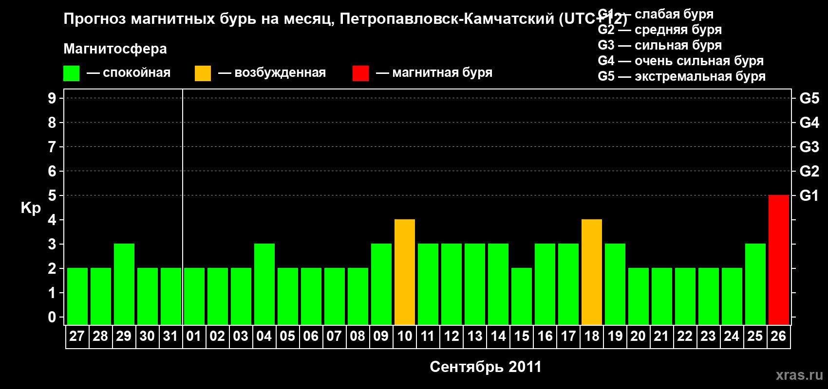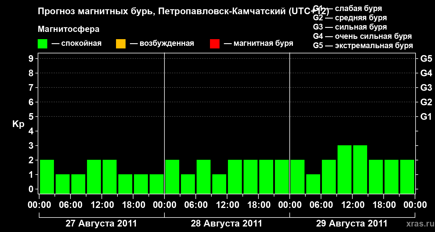 Прогноз магнитных бурь Петропавловске-Камчатском — 27 августа 2011 года