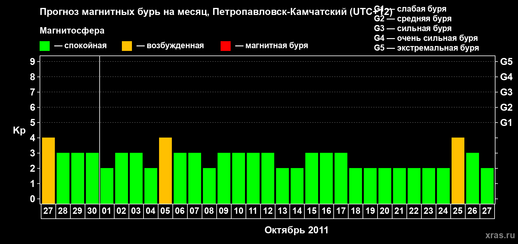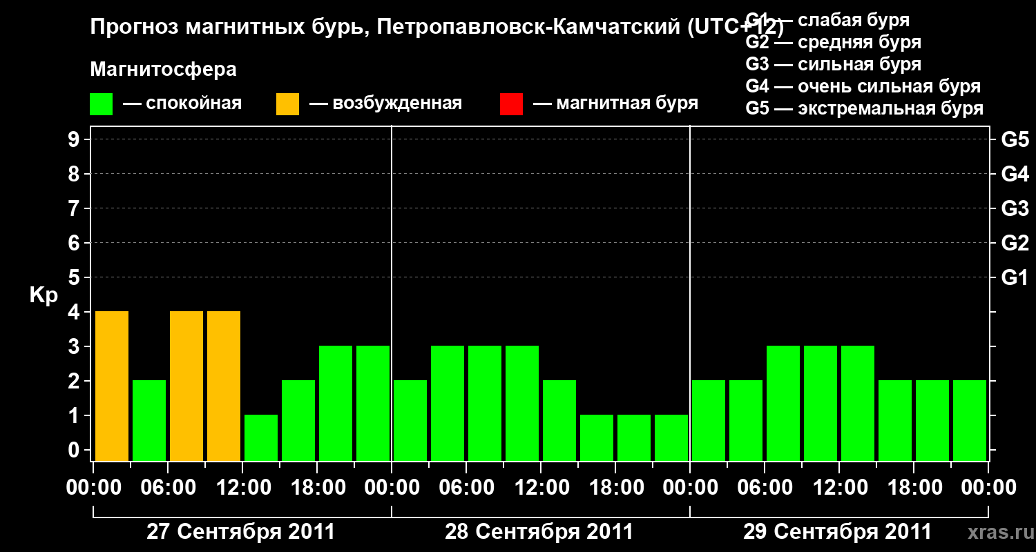 Прогноз магнитных бурь Петропавловске-Камчатском — 27 сентября 2011 года