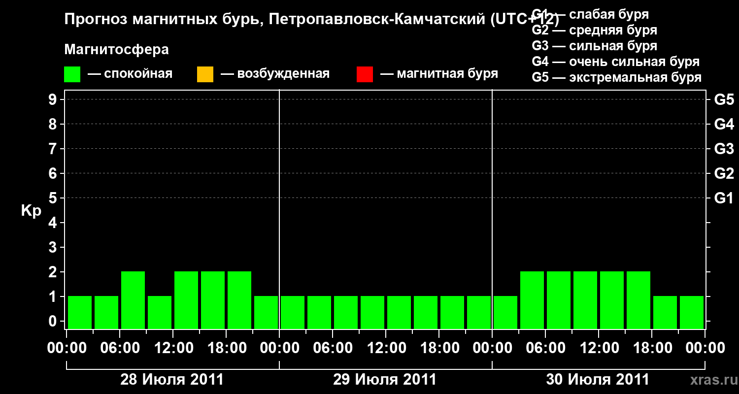 Прогноз магнитных бурь Петропавловске-Камчатском — 28 июля 2011 года