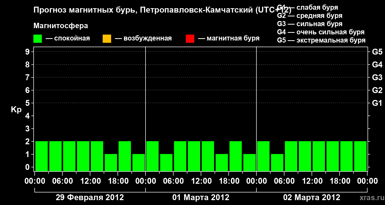 Прогноз магнитных бурь Петропавловске-Камчатском — 29 февраля 2012 года