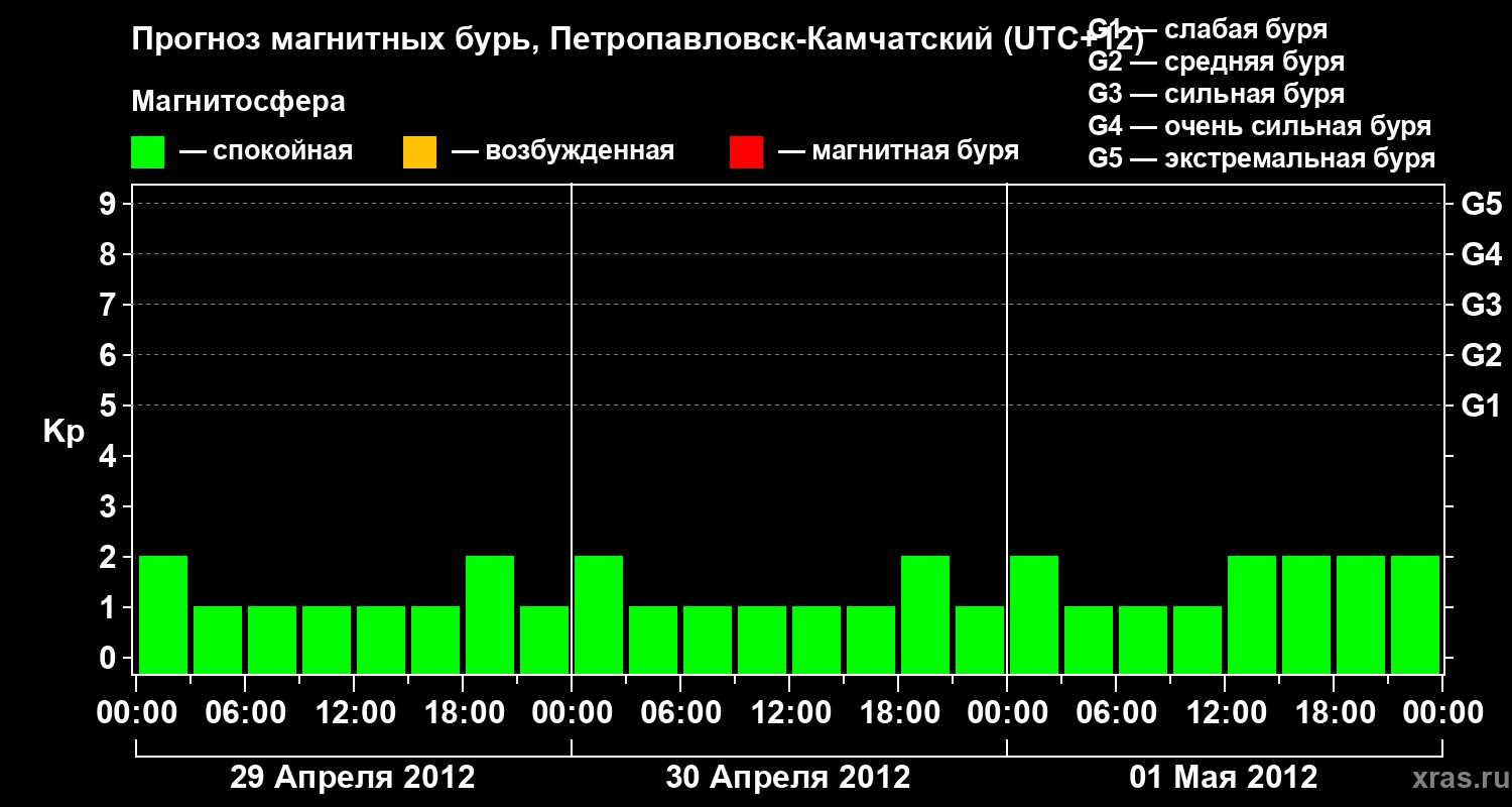 Прогноз магнитных бурь Петропавловске-Камчатском — 29 апреля 2012 года