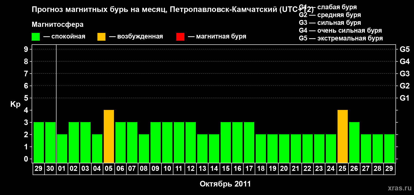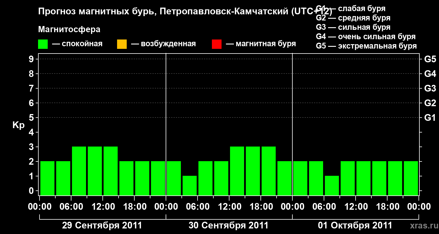 Прогноз магнитных бурь Петропавловске-Камчатском — 29 сентября 2011 года