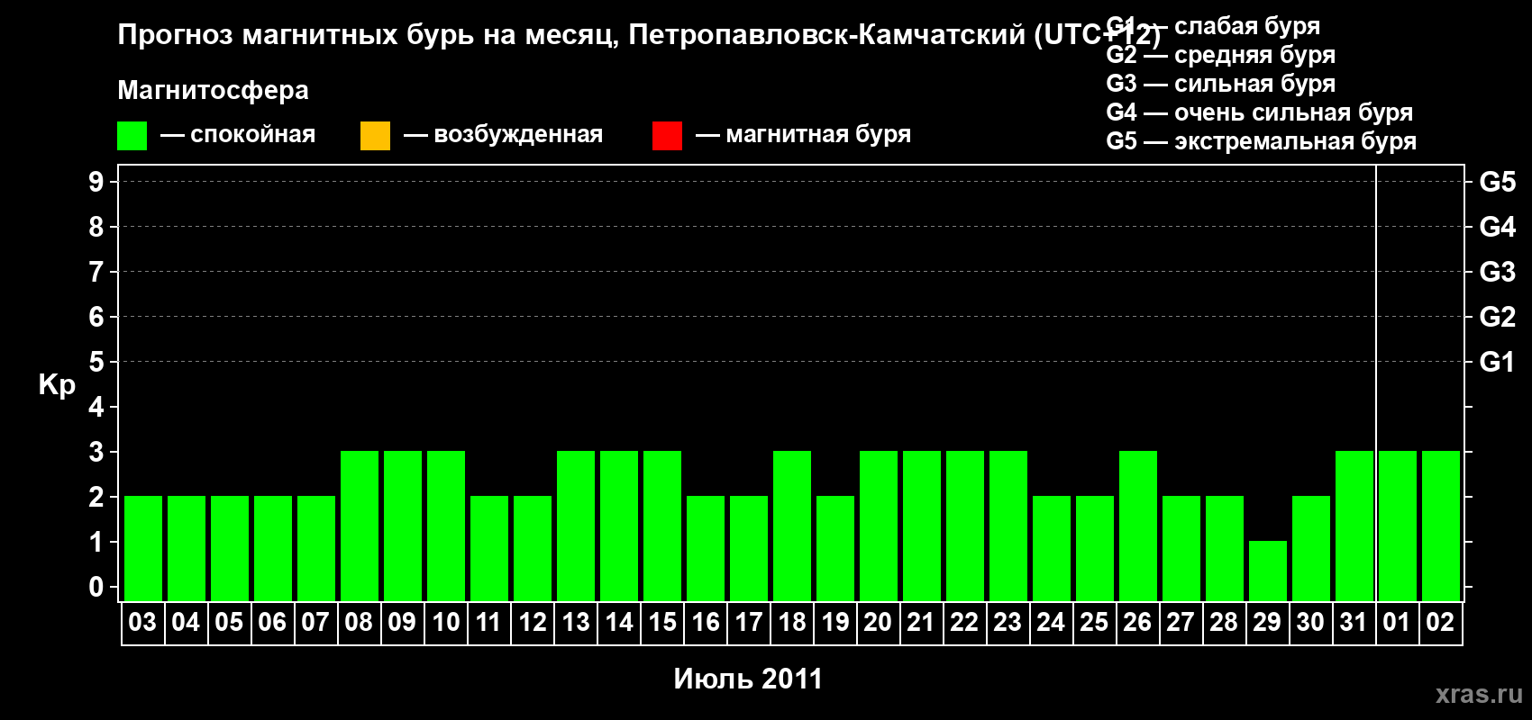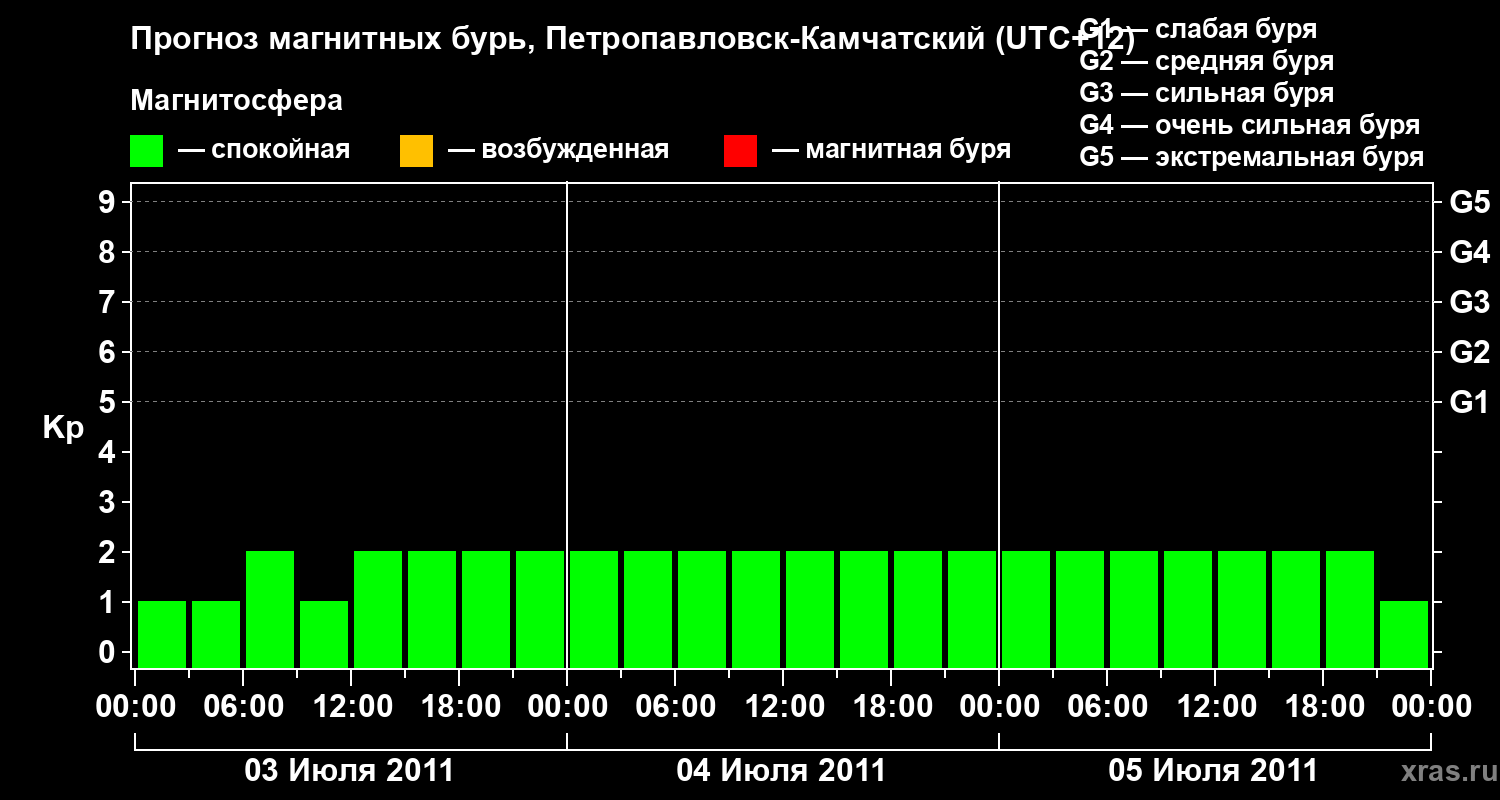 Прогноз магнитных бурь Петропавловске-Камчатском — 3 июля 2011 года