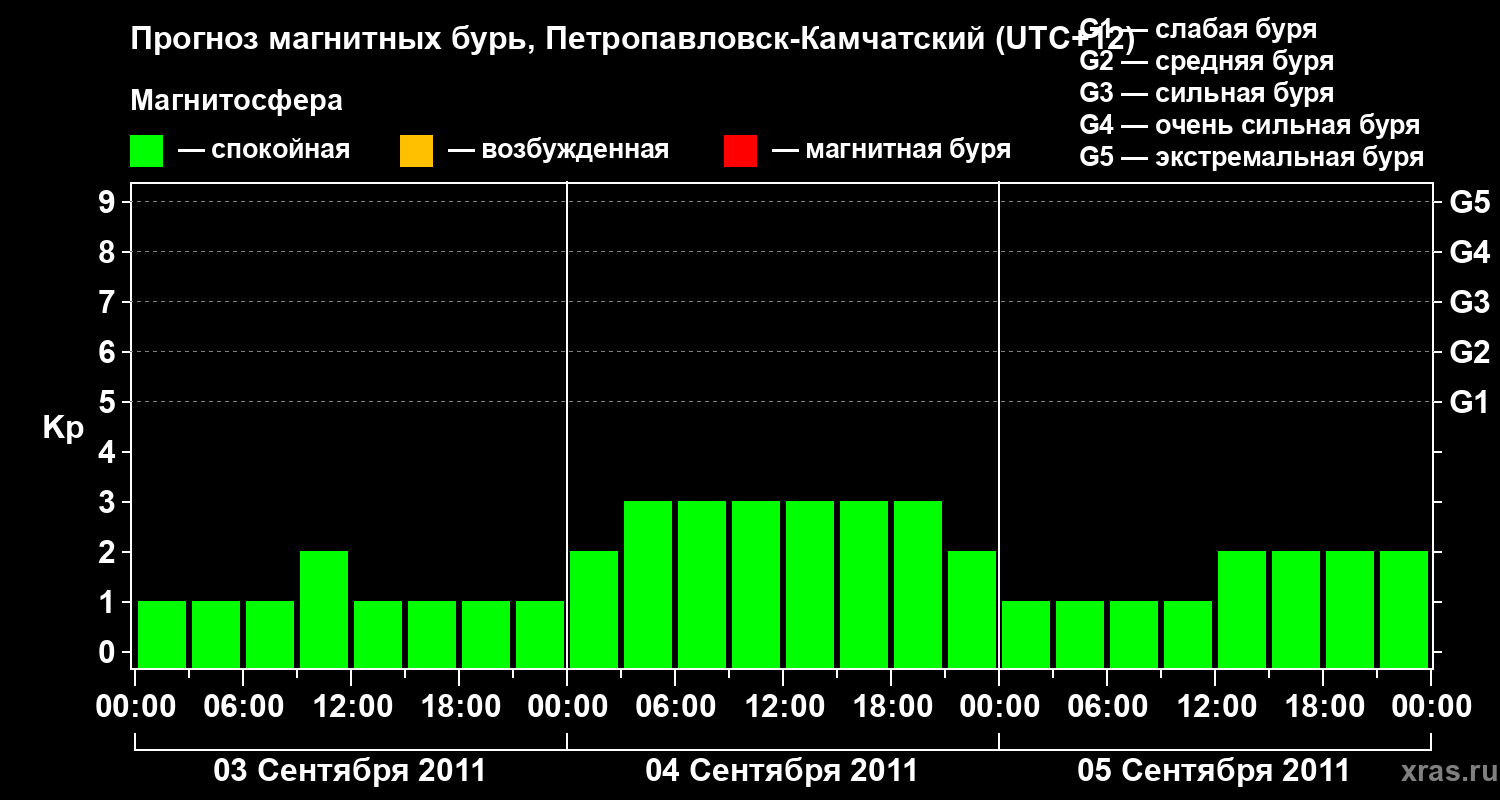 Прогноз магнитных бурь Петропавловске-Камчатском — 3 сентября 2011 года
