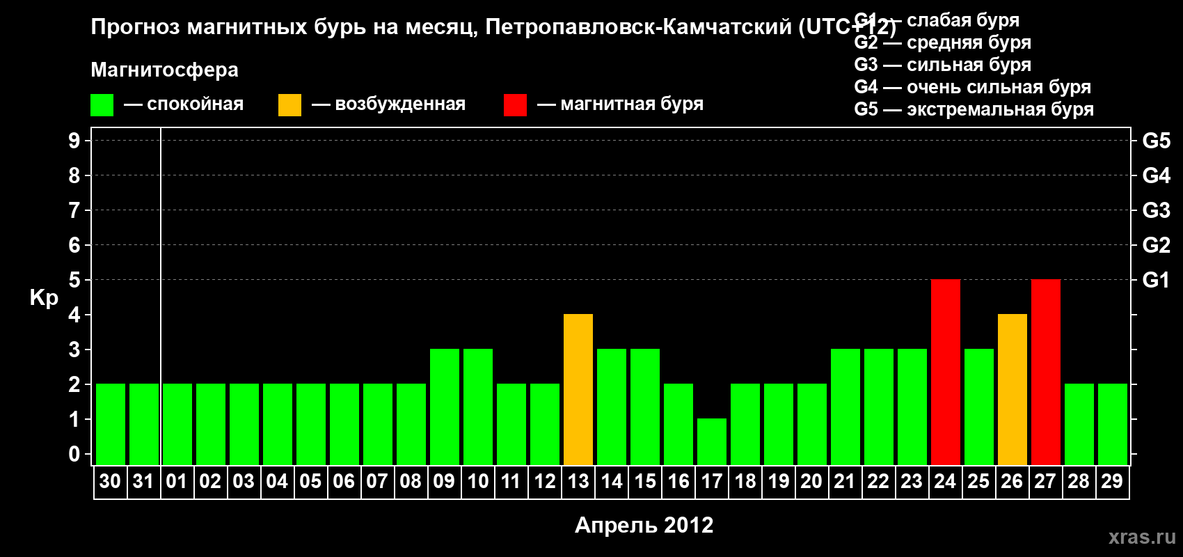 Прогноз магнитных бурь Петропавловске-Камчатском — 30 марта 2012 года