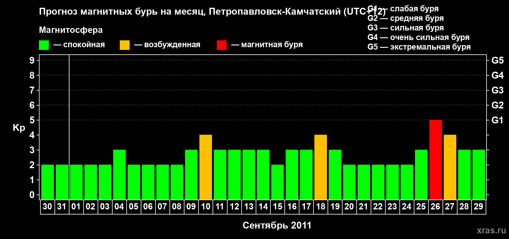 Прогноз магнитных бурь Петропавловске-Камчатском — 30 августа 2011 года