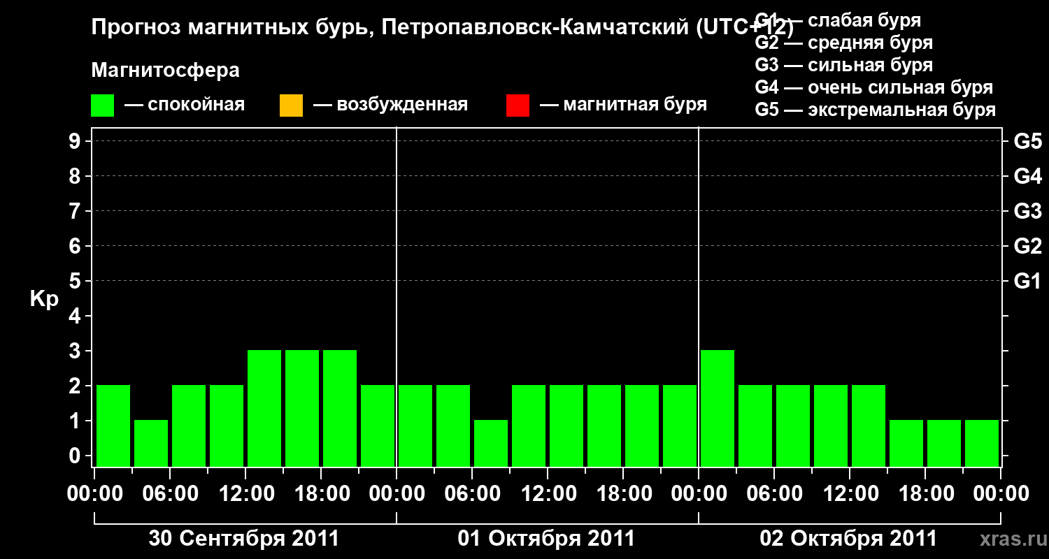 Прогноз магнитных бурь Петропавловске-Камчатском — 30 сентября 2011 года