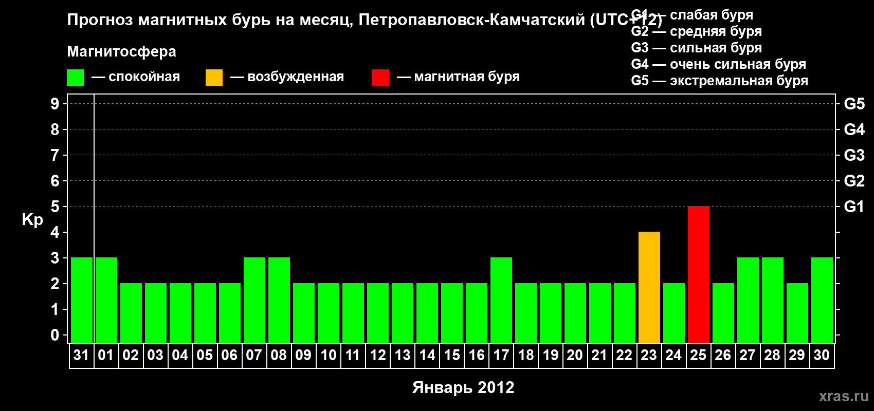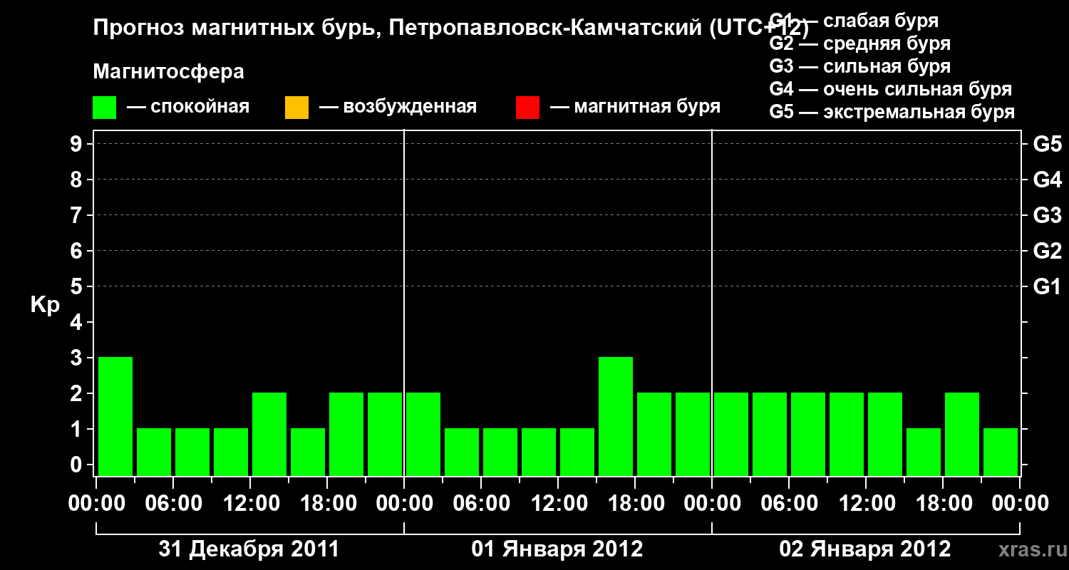 Прогноз магнитных бурь Петропавловске-Камчатском — 31 декабря 2011 года