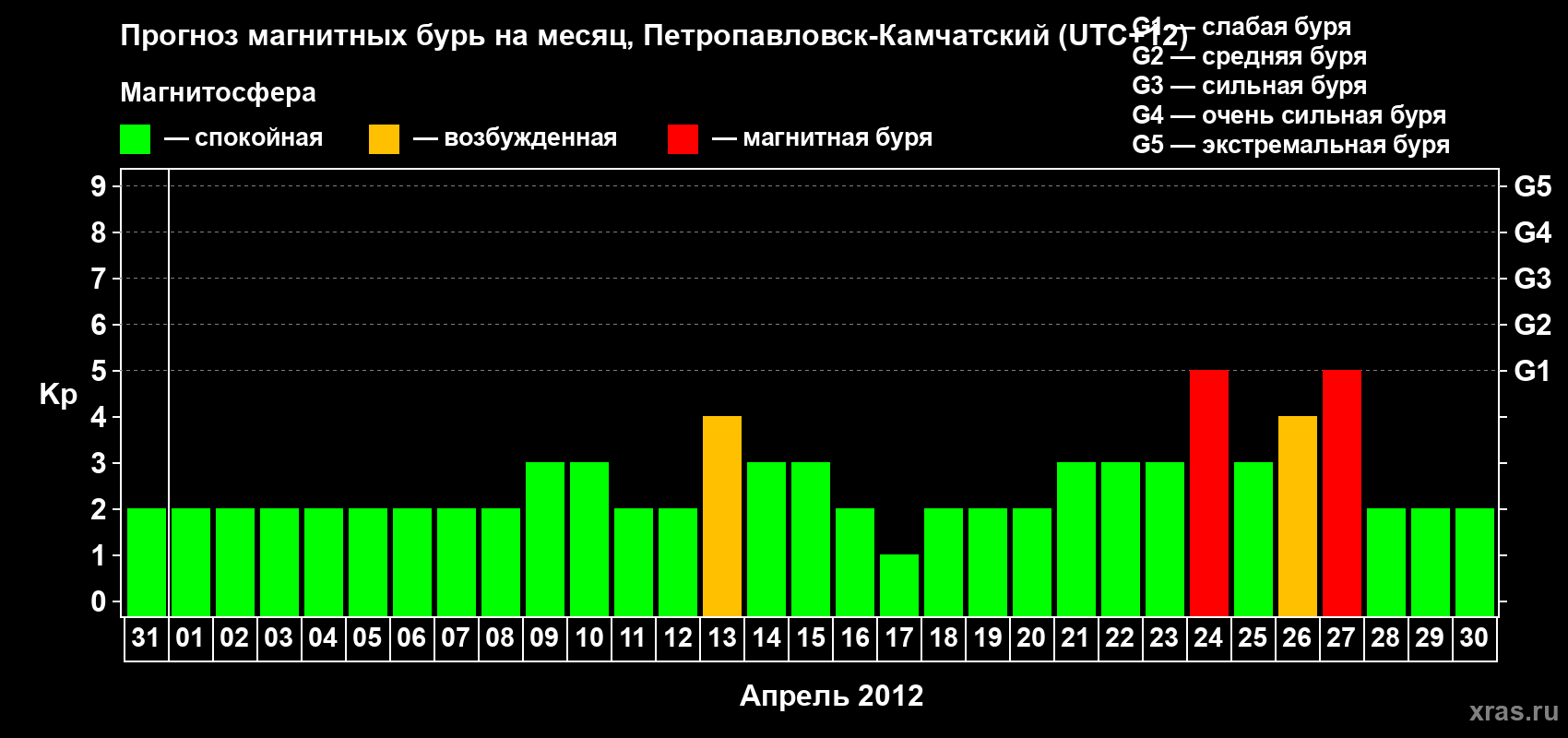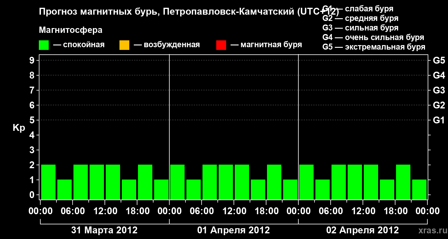Прогноз магнитных бурь Петропавловске-Камчатском — 31 марта 2012 года