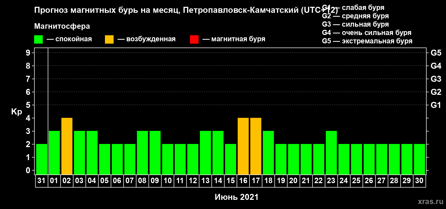 Прогноз магнитных бурь Петропавловске-Камчатском — 31 мая 2021 года