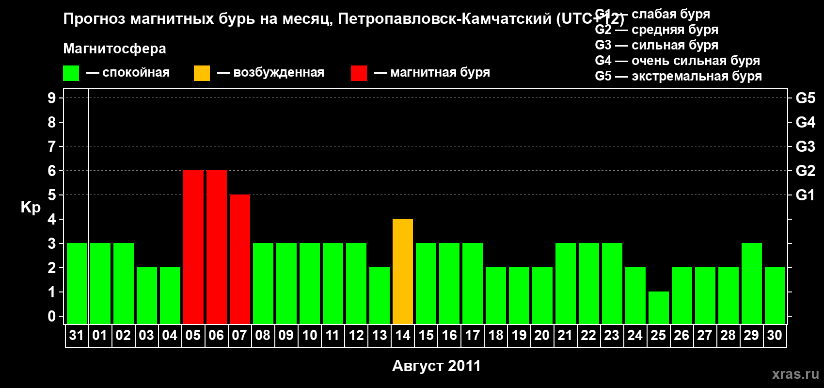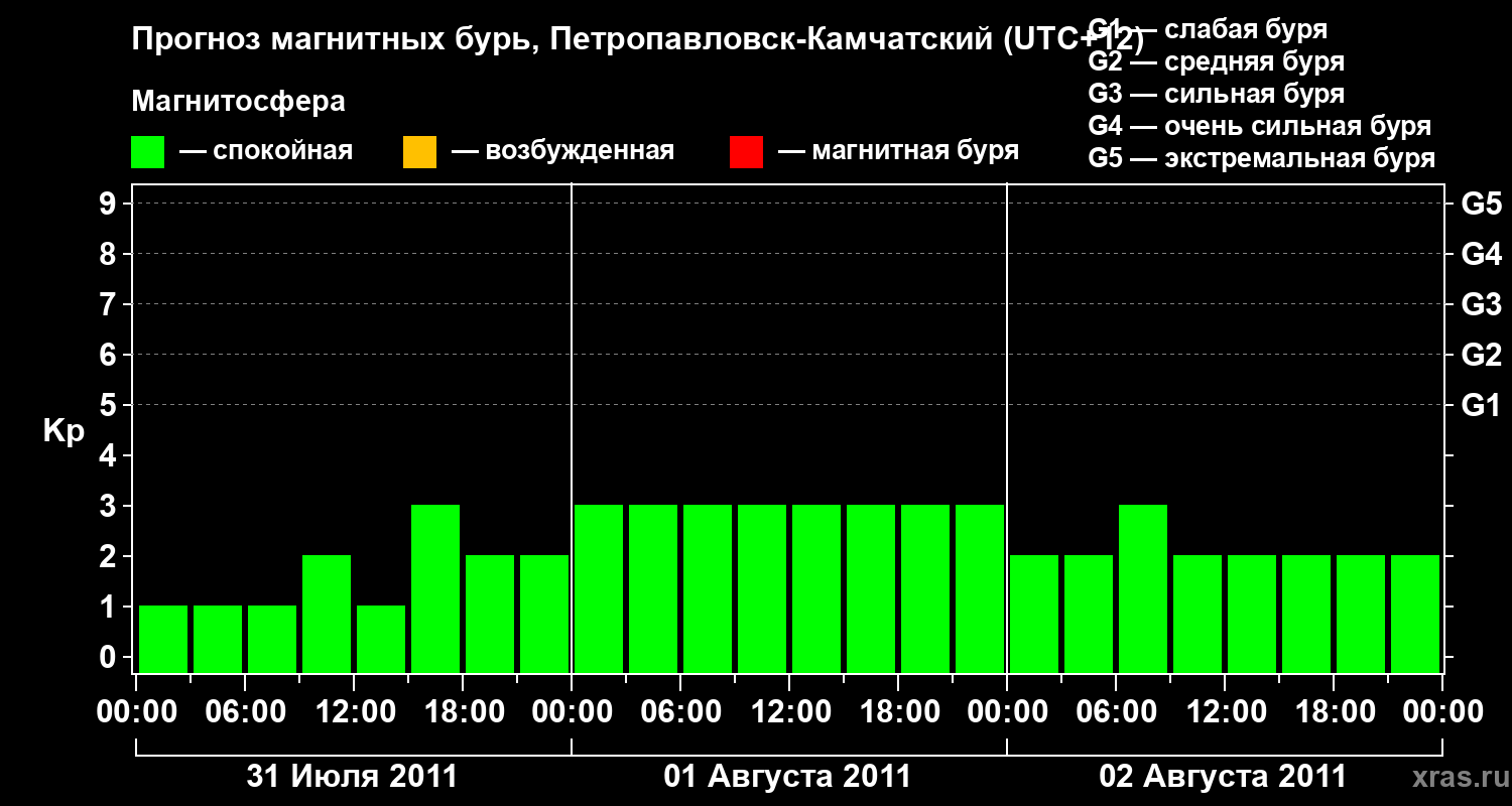 Прогноз магнитных бурь Петропавловске-Камчатском — 31 июля 2011 года