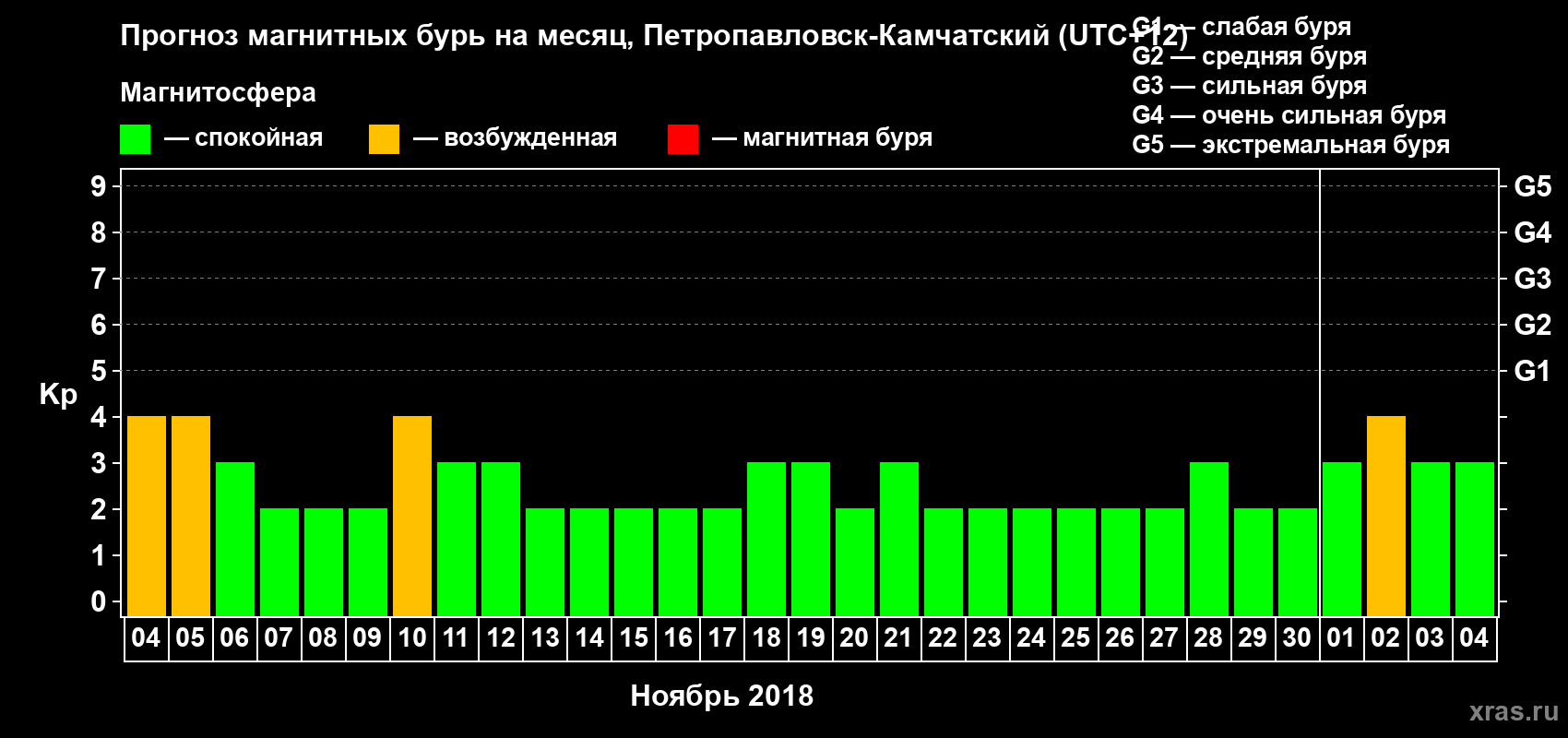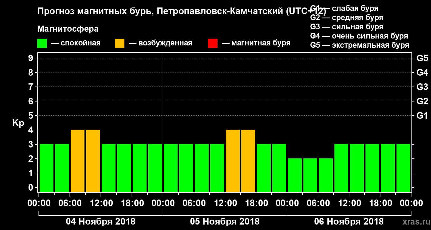 Прогноз магнитных бурь Петропавловске-Камчатском — 4 ноября 2018 года